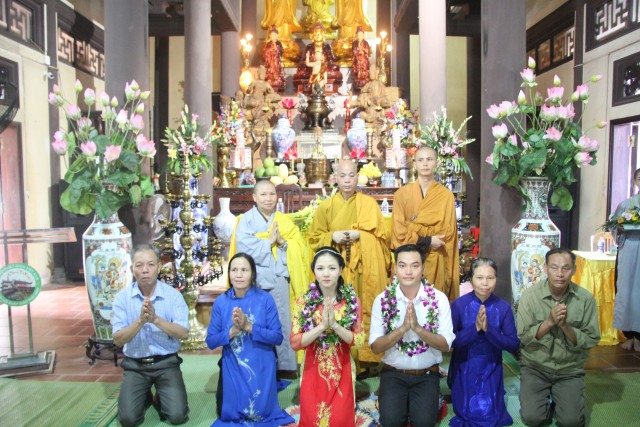 Chiều cùng ngày, Thượng tọa trụ trì chùa Từ Xuyên (P.Hoàng Diệu, TP.Thái Bình) đã hoan hỷ tổ chức lễ hằng thuận cho đôi bạn trẻ: Đinh Trọng Thưởng (pháp danh Từ Thương) và Bùi Thị Huyền (pháp danh Từ Ngọc).