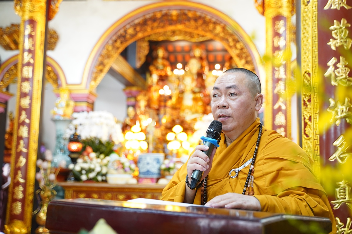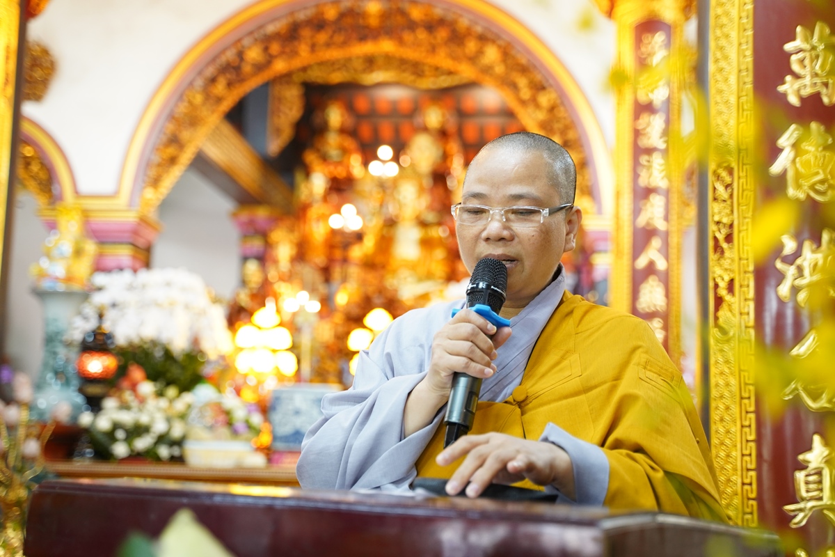 Trong không khí trang nghiêm thanh tịnh, toàn thể đại chúng đồng khởi thân, chắp tay để lắng nghe TT. Thích Giác Vũ tuyên đọc Bức Thông điệp Phật đản của Đức Pháp chủ GHPGVN và NS. Thích Đàm Hân tuyên đọc Diễn văn Phật đản của Hòa thượng Chủ tịch HĐTS GHPGVN gửi đến Tăng Ni, cư sĩ Phật tử trong và ngoài nước.
