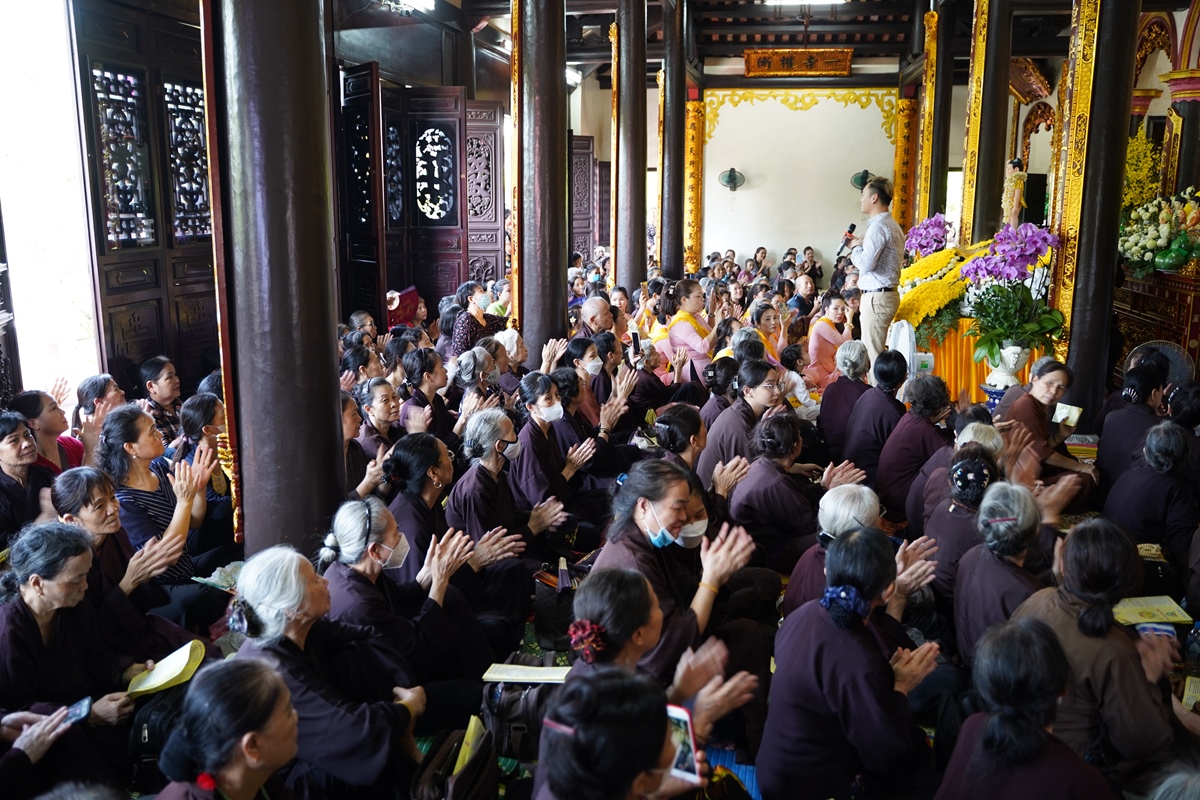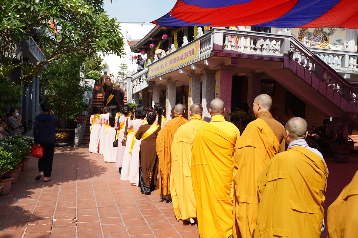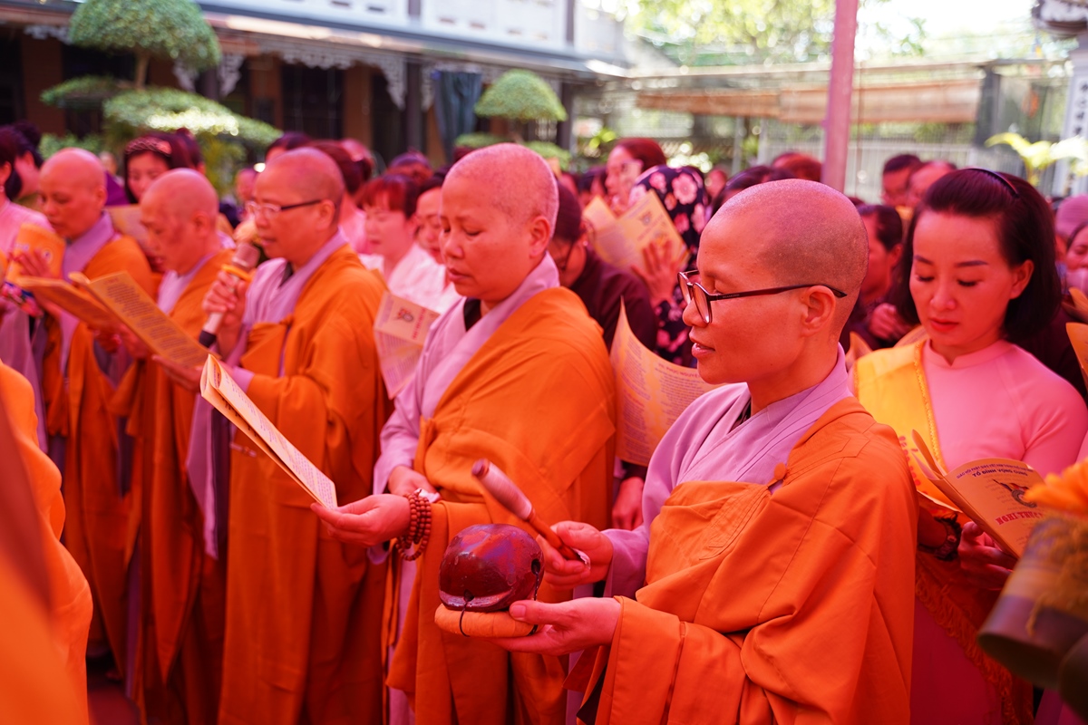 Chứng minh và tham dự buổi lễ có TT. Thích Giác Vũ – Chánh Thư ký BTS PG tỉnh, Phó ban Thường trực kiêm Trưởng ban Giáo dục Phật giáo TP. Nam Định, Phó trụ trì Tổ đình Vọng Cung; NS. Thích Đàm Hân – Chánh Thư ký BTS, Trưởng ban Từ thiện Xã hội PG TP. Nam Định, Phó trụ trì Tổ đình Vọng Cung; Ni sư Thích Đàm Hảo – Phó trụ trì Tổ đình Vọng Cung cùng chư Tôn Thiền đức Tăng Ni trụ trì các chùa trong thành phố, cùng sự tham dự của đông đảo nhân dân Phật tử Đạo tràng bản tự.