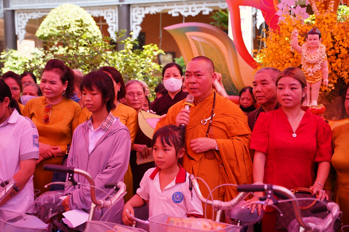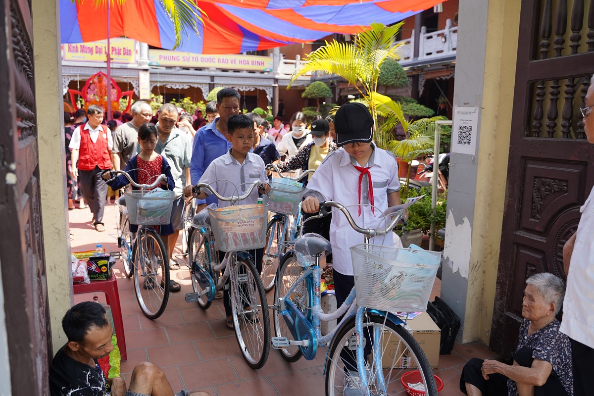 Đặc biệt, nhân Đại lễ Phật đản PL.2567, với tinh thần từ bi của Đạo Phật, chư Tôn đức Tổ đình Vọng Cung đã phối hợp cùng Hội Chữ Thập đỏ thành phố, trao tặng 25 chiếc xe đạp cho 25 em học sinh tiểu học, THCS có hoàn cảnh khó khăn của 25 phường trong thành phố. Món quà này giúp các em học sinh có thêm động lực để cố gắng học tập, phấn đấu trở thành những công dân gương mẫu có ích cho xã hội. Buổi lễ đã khép lại trong niềm hoan hỷ, một lòng chí thành chí kính của những người con Phật hướng về ngày đản sinh của Đức Thế Tôn.