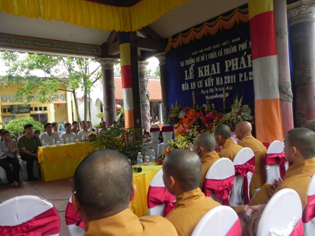 Buổi lễ được dặt dưới sự chứng minh của Hòa thượng Thích Minh Tâm, thành viên HĐCM GHPG VN, Thượng tọa Thích Hạnh Nghiêm, – Trưởng BTS PG tỉnh Nam Định, Thượng tọa Thích Quảng Hà – Phó ban Nghi lễ HĐTS GHPG VN, Phó ban TT BTS PG tỉnh Nam Định, Ni trưởng Thích Nữ Huệ Từ, Chánh thư ký Ban đặc trách Ni giới TW HĐTS GHPG VN, Ni sư Thích Nữ Từ Nhẫn, Ni sư Thích Nữ Như Thiện, UV Ban đặc trách Ni giới HĐTS GHPG VN, Ni sư Thích Đàm Hiền, Trưởng ban đặc trách Ni giới tỉnh Nam Định cùng với sự hiện diện của 87 hành giả an cư và khoảng hơn 1500 Phật tử tham dự.