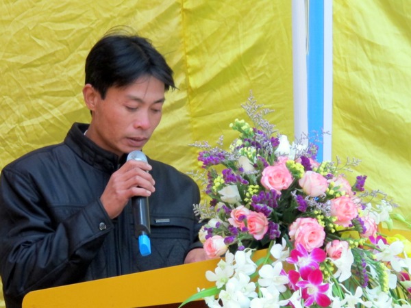 Kế đến, ông Nguyễn Văn Thiêm – Trưởng thôn Hải Lạng Trang báo cáo tóm tắt tiến trình xây dựng. thôn Hải Lạng Trang.