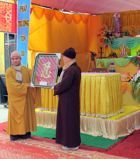 Tiếp đó, Sư thầy Thích Đàm Tân – Trụ trì chùa Hải Lạng Trang đón nhận những phần quà từ các vị khách mời gửi đến chúc mừng đại lễ khánh thành Tổ đường. Sau đó là nghi thức dâng hương cầu nguyện cho quốc thới dân an và hồi hướng bế mạc./.