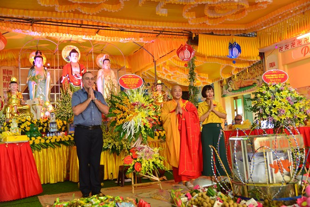 Phật tử người nước ngoài tặng hoa chúc mừng