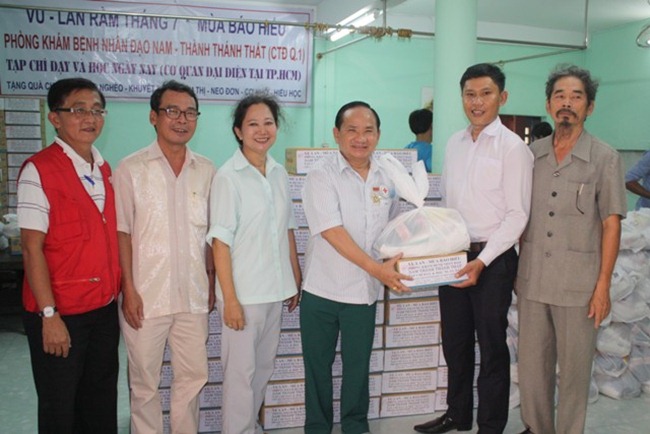Cùng dự trao quà có ông Nguyễn Hữu Nhơn, Trưởng Ban Điều hành Phòng Khám bệnh nhân đạo của Nam Thành Thánh thất, Nhà báo Ngô Văn Hiền, Phó tổng biên tập Tạp chí Dạy và Học ngày nay và đại diện Hội Chữ Thập đỏ phường Nguyễn Cư Trinh, quận 1, TP.HCM.