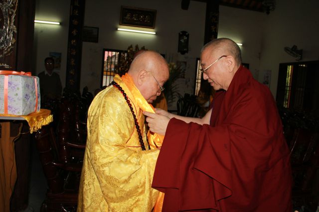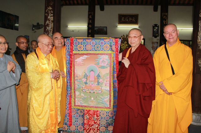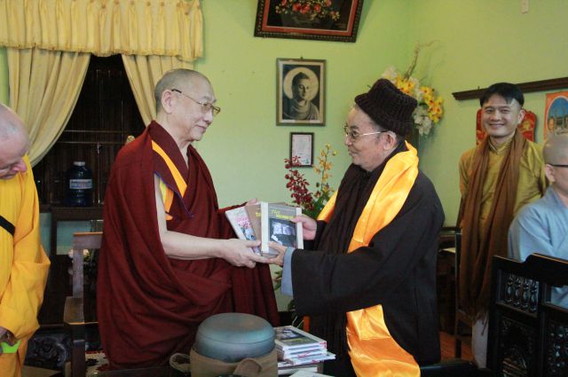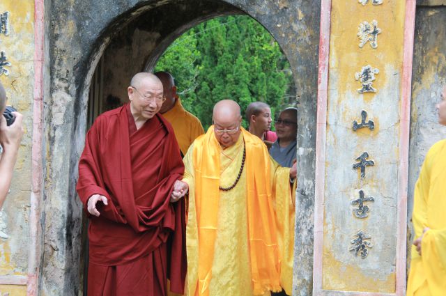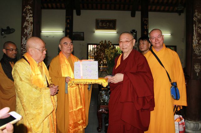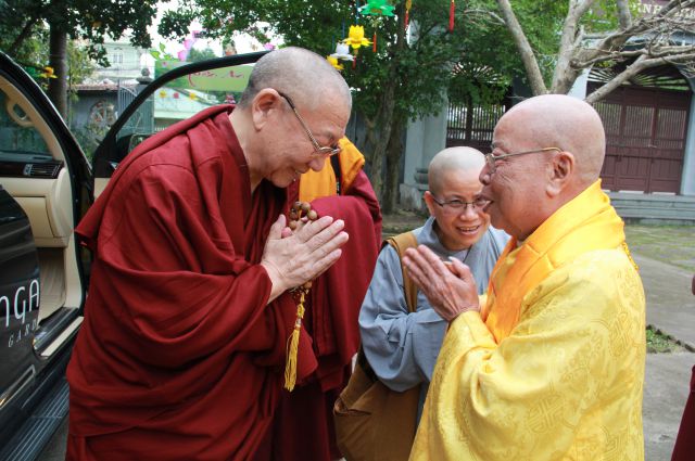 Chư tôn đức trụ trì các tự viện đã ân cần đón tiếp và giới thiệu khái quát về lịch sử hình thành của bổn tự. Đặc biệt tại Tổ đình Chúc Thánh và chùa Pháp Bảo, Ngài được Chư tôn đức giới thiệu lịch sử hình thành và phát triển của dòng thiền Lâm Tế Chúc Thánh. Ngài rất hoan hỷ trước sự kế thừa tương tục từ Lịch đại Tổ sư cho đến ngày hôm nay giống như bản thân Ngài kế thừa mạng mạch của dòng phái Mũ Vàng của Tổ sư Tông Cách Ba, Tây Tạng.