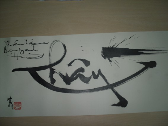 Tôi rất thích chữ THẦY mà mình được tặng năm 2011. Tác giả bức tranh thư pháp này nói rằng trong chữ Thầy có tất cả. Thầy là người lái đò đưa khách qua sông. Con đò (hay thuyền) ở đây chính là chữ T. Dấu huyền giống như 1 đèn pha. Nếu chữ thầy thiếu đi dấu huyền sẽ thành thây, tức xác chết. Đèn soi sáng đường cho trò đi là rất quan trọng. Và tôi chợt nhớ đến câu “Ơn giáo dưỡng 1 đời nên huệ mạng; Nghĩa ân sư muôn kiếp khó đáp đền”. Hay quá! Còn chữ Y chính là mái chèo đưa thuyền tiến về phía trước. Chúng ta đi đâu? Từ bờ bên này đến bờ bên kia. Từ ngu dốt đến với tri thức. Từ mê sang tỉnh.