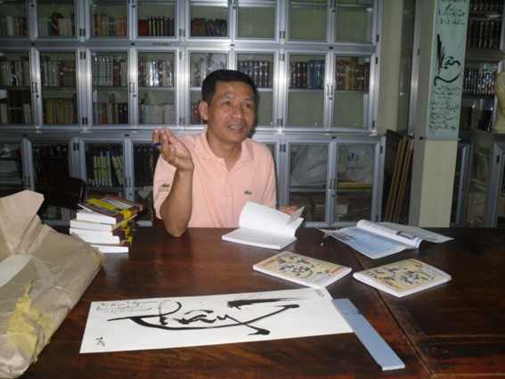 Ngày hôm nay, thứ 6, tức mười tư tôi lại dành trọn buổi sáng đến ngắm sách và thư pháp. Khách đến khá đông và đang bình phẩm từng bức tranh. Thầy Chính Trung ân cần giải thích ý nghĩa mỗi bức, với mỗi nét mực và từng từ. Tôi ngắm mãi không chán. Càng ngắm càng mê. Mà mỗi lần ngắm lại thấy thêm 1 ý mới. Hinhg như thư pháp nơi đây là TÂM THƯ PHÁP chứ không chỉ là thư pháp bình thường. Mà đã là tâm thì canà gì phải giải thích, cần gì phải hiểu nghĩa.Thật là tuyệt vời.