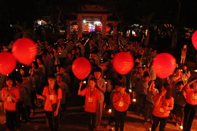 Buổi tối cùng ngày, BTC đã giúp các bạn trẻ thực hiện đêm đốt nến tri ân và thả lời nguyện ước theo bóng bay. Hơn 3000 ngọn nến được thắp sáng quanh chùa Liên Trì, góp lời cầu nguyện, tri ân đến hai đấng sanh thành dưỡng dục của 300 bạn tu sinh. Buổi lễ có sự chứng minh của ĐĐ. Thích Hải Trung, Trưởng BTC khóa tu, chư tôn đức tăng tại chùa Liên Trì, các anh chị tình nguyện viên, quý Phật tử, quý phụ huynh và hơn 300 bạn tu sinh tham dự.