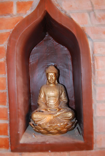 Tường của Tam quan có các ô đặt tượng Phật nhỏ