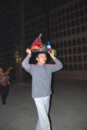 Phía ngoài sân, Ban quản lý đặt hẳn một lò hóa vàng. Những ngày này, lượng khách đổ tới rất đông, phải dùng cả xe ủi để xúc tro vàng đi.