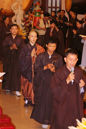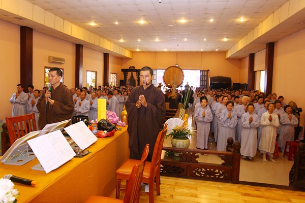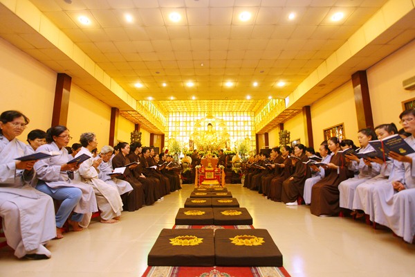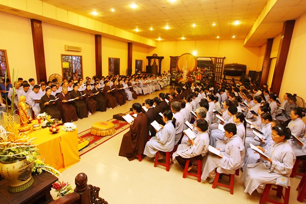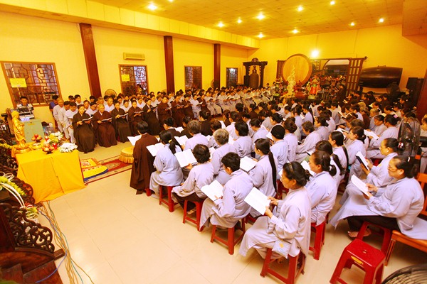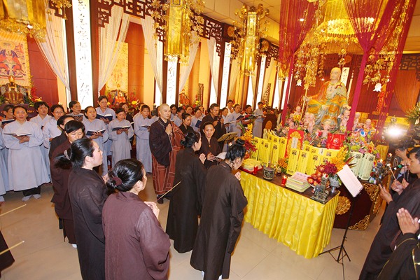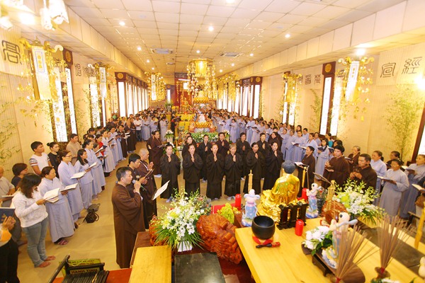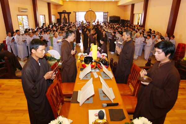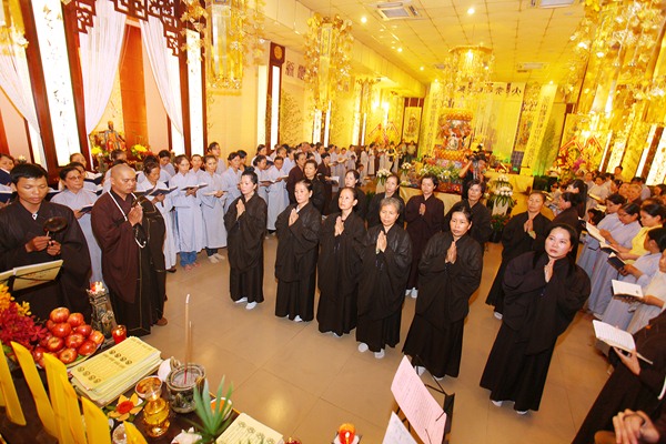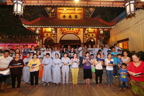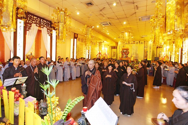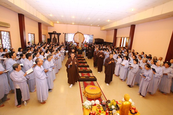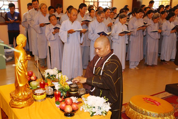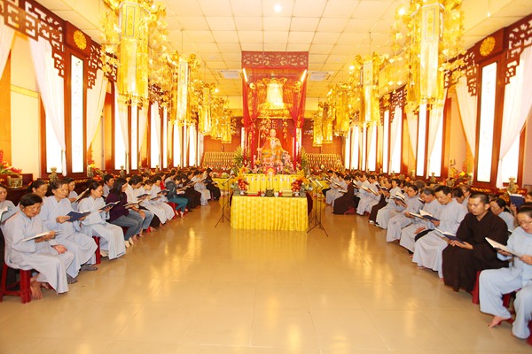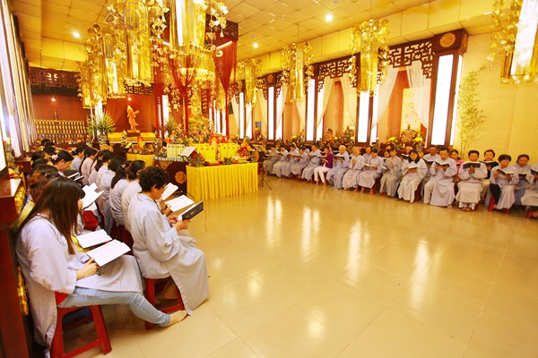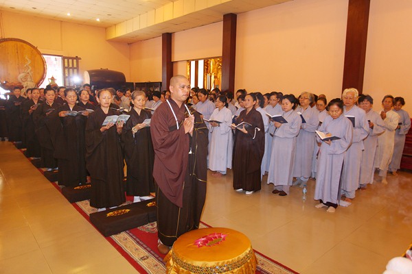 Vào lúc 4h sáng, khóa lễ trì tụng kinh Vô Lượng Thọ diễn ra bắt đầu cho một ngày huân tu công đức Pháp hội Trung Phong Tam Thời Hệ Niệm cầu nguyện cho quốc thái dân an và siêu tiến cho các vong linh sản nạn thai nhi.