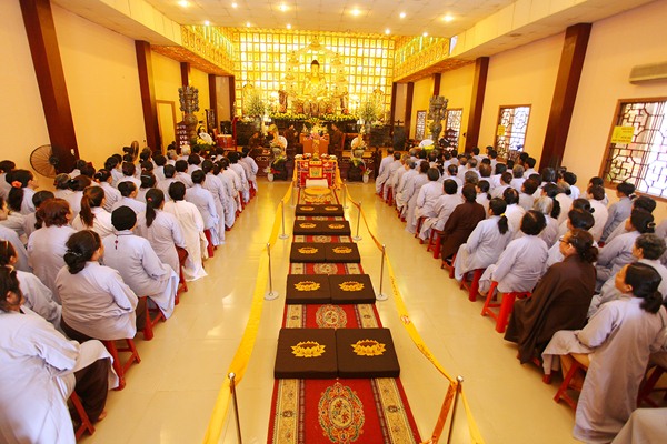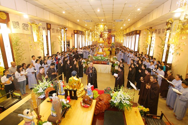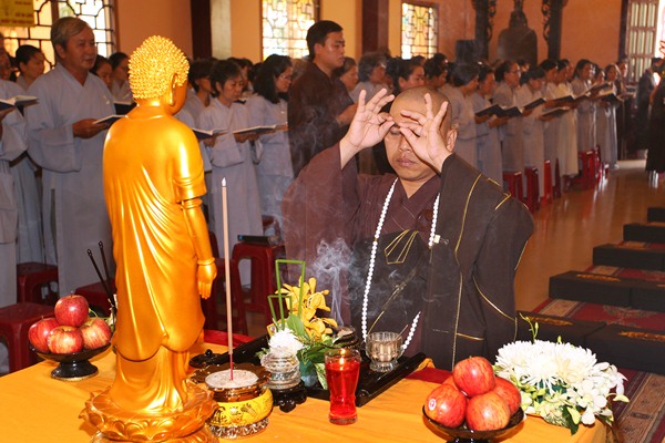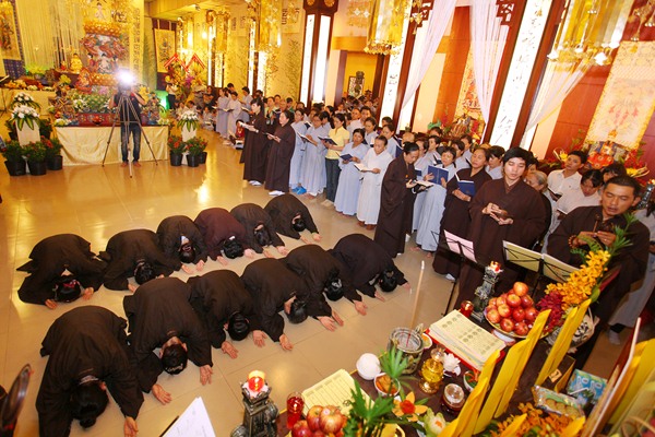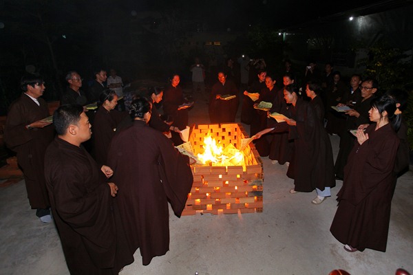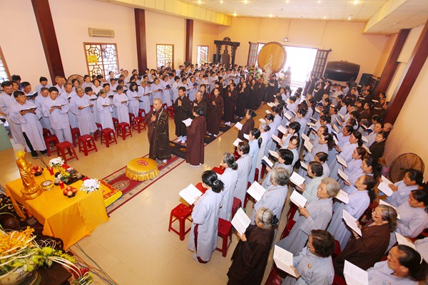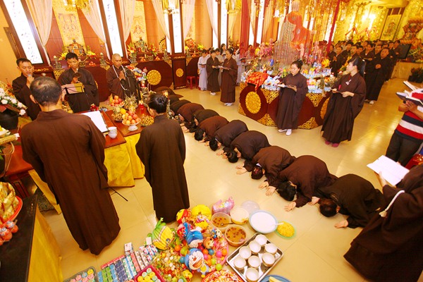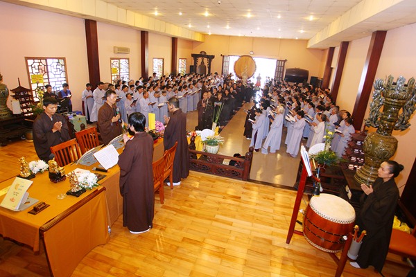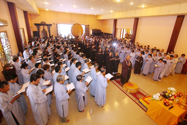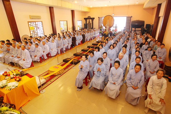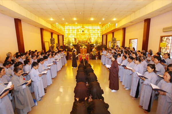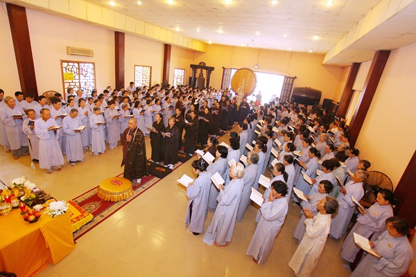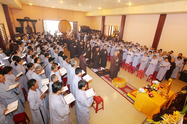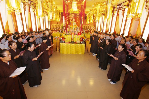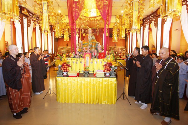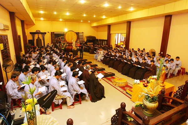 Vào lúc 4h sáng, khóa lễ trì tụng kinh Vô Lượng Thọ diễn ra bắt đầu cho một ngày huân tu công đức Pháp hội Trung Phong Tam Thời Hệ Niệm cầu nguyện cho quốc thái dân an và siêu tiến cho các vong linh sản nạn thai nhi.