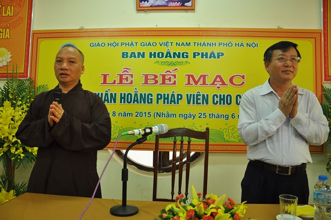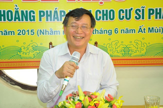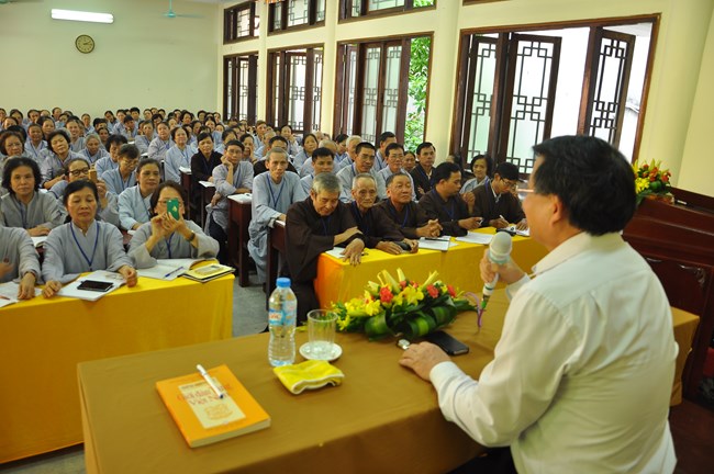 Mở đầu cuộc nói chuyện chia sẻ với đại chúng, ông nhấn mạnh, trong Phật giáo, việc hoằng dương Phật pháp của người xuất gia được thể hiện bằng 3 lĩnh vực: Thân hành trang nghiêm, Khẩu nói lời ái ngữ trí tuệ, Ý suy nghĩ sâu sắc chín chắn. Ba lĩnh vực đó trong những người xuất gia là 3 mặt của việc Hoằng pháp. Nhưng đối với người Phật tử tại gia, còn có 1 lĩnh vực quan trọng hơn cũng thông qua Thân – Khẩu – Ý, nhưng thân của người tại gia được thể hiện bằng hành động thực tiễn, những quan hệ trong cuộc sống và những việc làm giúp đỡ mọi người.