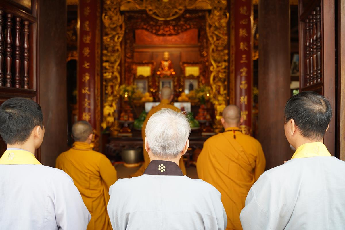 Đúng 7h30′ sáng, Hòa thượng trụ trì Thích Bảo Nghiêm – Phó chủ tịch HĐTS, Trưởng Ban hoằng pháp TƯ đã làm lễ niêm hương bạch Phật, yết Tổ và đăng đàn truyền giới cho các hành giả tu tập Bát Quan Trai giới trong ngày tu này. Đồng thời, Hòa thượng đã có thời pháp thoại chia sẻ với các hành giả về tầm quan trọng của Bát quan trai giới đối với hành giả tu tập.