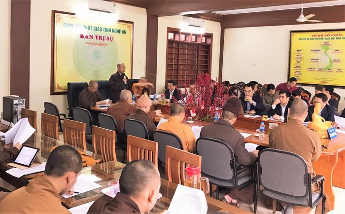 Thực hiện công tác Phật sự trọng tâm năm 2020 của Hội đồng Trị sự GHPGVN, căn cứ đề nghị của Ban Văn hóa Trung ương GHPGVN và Ban Trị sự GHPGVN tỉnh Nghệ An. Chiều nay, ngày 06/03/2020 tại Chùa Diệc P. Quang Trung TP. Vinh tỉnh Nghệ An ( Trụ sở BTS GHPGVN tỉnh Nghệ An) Hội nghị thông qua kế hoạch chương trình Lễ hội “Hương sen xứ Nghệ năm 2020” và kỷ niệm 130 năm ngày sinh Chủ tịch Hồ Chí Minh, nhằm thống nhất phương án, kế hoạch chương trình tổ chức lễ hội.
