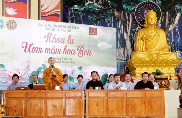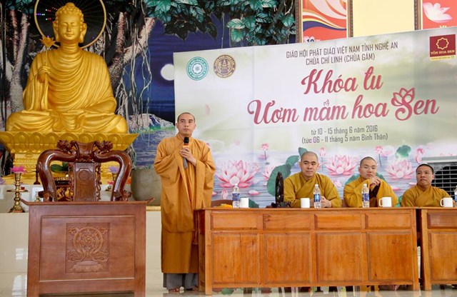 Tại buổi lễ, Đại đức Thích Tuệ Minh thay mặt BTC khóa tu mùa hè 2016 đã đọc diễn văn bế mạc. Theo đó, đây là khóa tu quy mô rộng mở cho tất cả các bạn trẻ đến từ 23 xã và thị trấn trong toàn huyện bao gồm học sinh, sinh viên và Phật tử xa gần trong tỉnh cũng như một số khóa sinh từ ngoài tỉnh có độ tuổi từ 12 đến 20 tuổi. Trải qua 6 ngày tu học với nhiều chương trình đa dạng, phong phú, phù hợp với tâm lý tuổi trẻ, khóa tu qua đã để lại nhiều ấn tượng đẹp và hữu ích cho cuộc sống của tuổi thanh thiếu niên ngày nay.