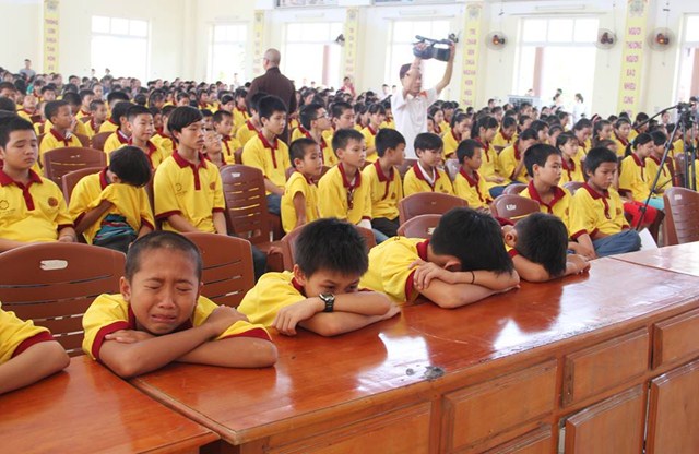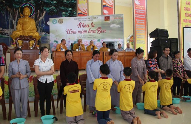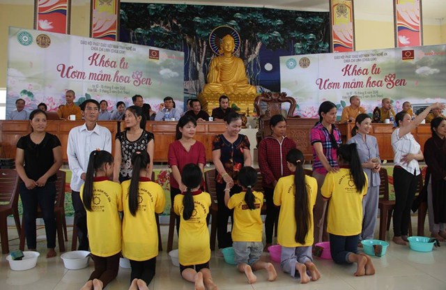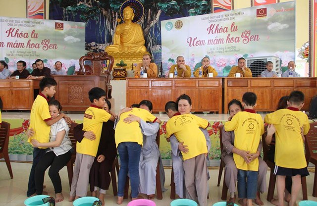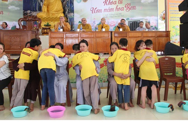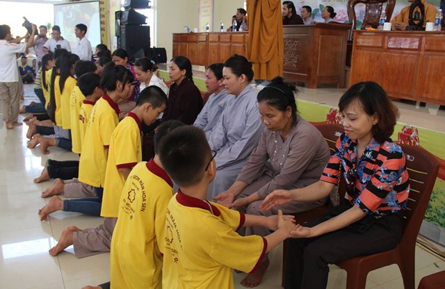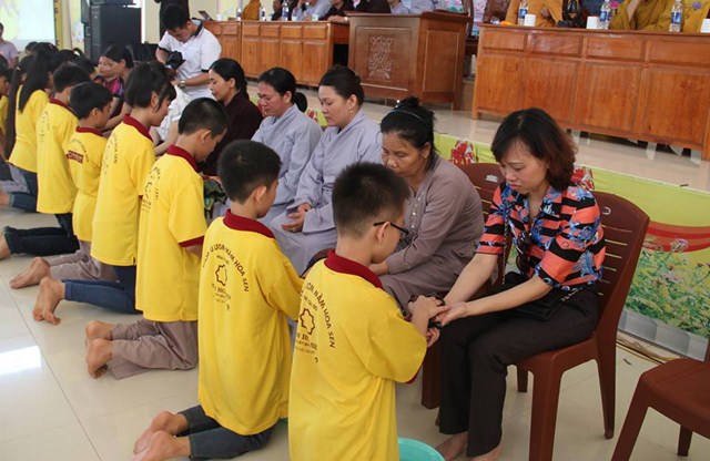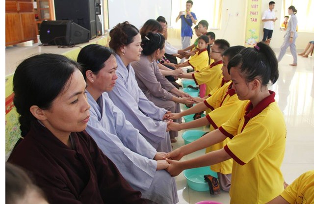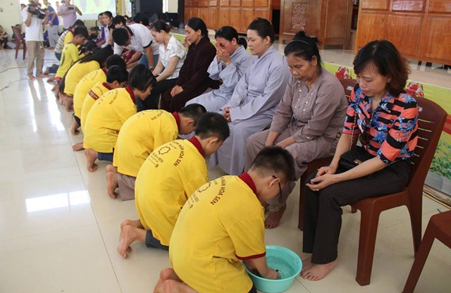Trước khi kết thúc buổi lễ bế mạc, để đánh dấu sự trưởng thành về mặt tinh thần của các khóa sinh tham dự khoá tu mùa hè năm nay, BTC khóa tu đã cho các em được tri ân 2 đấng sinh thành thông qua nghi thức rửa chân cho cha mẹ, buổi lễ tri ân đã kết thúc trong không khí thật cảm động và ý nghĩa.