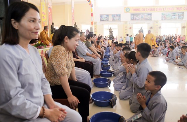 Cũng trong buổi bế mạc các em đã được thực hiện sự yêu thương bằng chính hành động thiết thực nhất chứ không phải chỉ bằng lời nói suông, đó là tập rửa tay cho cha mẹ, tập rót nước dâng trà cho cha mẹ và tặng hoa chúc sức khoẻ mẹ cha. Đây không phải là hình thức suông mà thông qua đó tạo nên một hình ảnh sống động, biến lời yêu thương bằng hành động cụ thể, tạo nên hiệu ứng nhân văn vô cùng sâu sắc và cảm động.