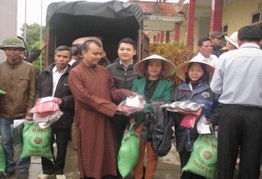 Dịp này Công Ty TNHH Vận tải Thuỷ Bộ Hải Hà, tỉnh Thái Bình và chùa An Thái cũng đã đến thăm và trao quà trực tiếp cho 15 hộ gia đình nghèo, có hoàn cảnh khó khăn, đặc biệt tại các xã Quỳnh Văn; Quỳnh Thọ (Quỳnh Lưu) và phường Quỳnh Thiện ( TX Hoàng Mai) mỗi suất quà trị giá 1.000.000đ.