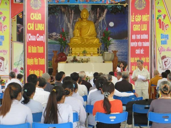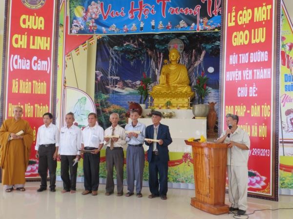 Tại buổi giao lưu đã có hơn 60 bài thơ được sáng tác riêng về Phật giáo huyện Yên Thành và ngôi Chùa GÁM linh thiêng trong tâm thức người dân huyện lúa anh hùng. Những bài thơ ca ngợi về đức Phật, giáo pháp của đức Phật, và những con người làm sống dậy tinh thần Phật pháp nơi đây để bây giờ người dân Huyện Yên Thành lại thêm một sự tự hào mạnh mẽ rằng Quê hương của mình có Phật pháp về, sẽ làm cho cuộc sống người dân càng thêm an lạc, chốn tâm linh càng được phát huy.