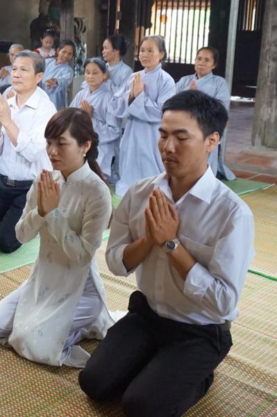 Sau khi đã chia sẻ những lời Phật dạy về đời sống hạnh phúc của một gia đình, là thời tụng kinh cầu nguyện cho tân lang và tân nương. Những món quà của chư tôn đức cũng được gửi tặng để chúc phúc cho buổi lễ tốt đẹp
