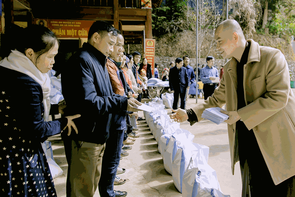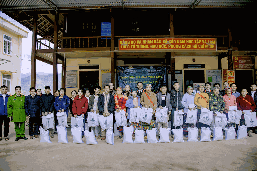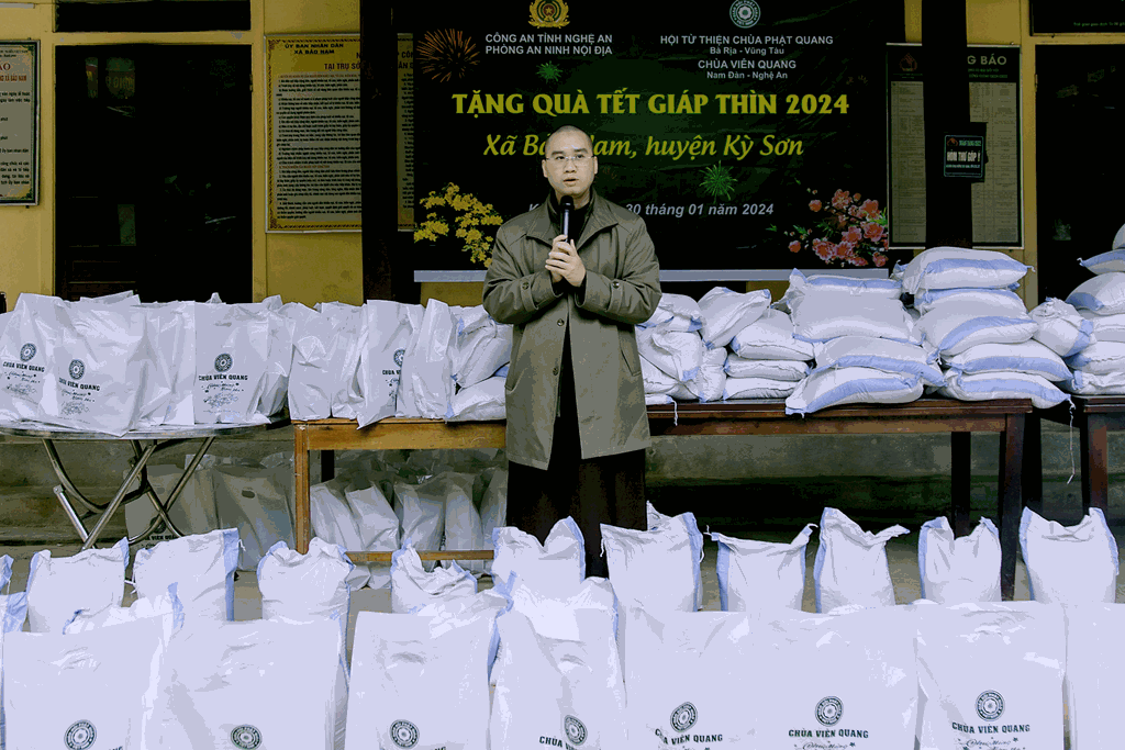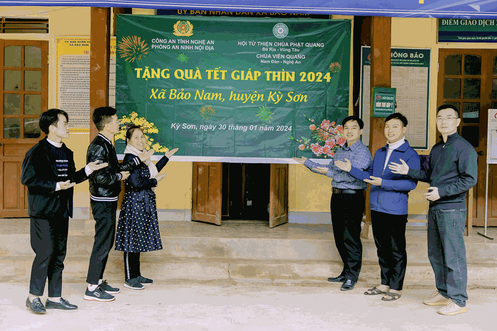Vừa qua, nhân dịp Tết nguyên đán Giáp Thìn (2024), sáng ngày 30/01/2024 (nhằm ngày 20/12/Quý Mão), Hội Từ Thiện Thiền Tôn Phật Quang, chùa Viên Quang kết hợp với Phòng An ninh Nội địa Công an Tỉnh Nghệ An (PA02) thực hiện kế hoạch “XUÂN YÊU THƯƠNG, ẤM LÒNG DÂN BẢN”, trao quà cho những người dân có hoàn cảnh khó khăn trên địa bàn xã Bảo Nam, huyện Kỳ Sơn, tỉnh Nghệ An. Tổng trị giá các phần quà là 50.000.000 đồng.