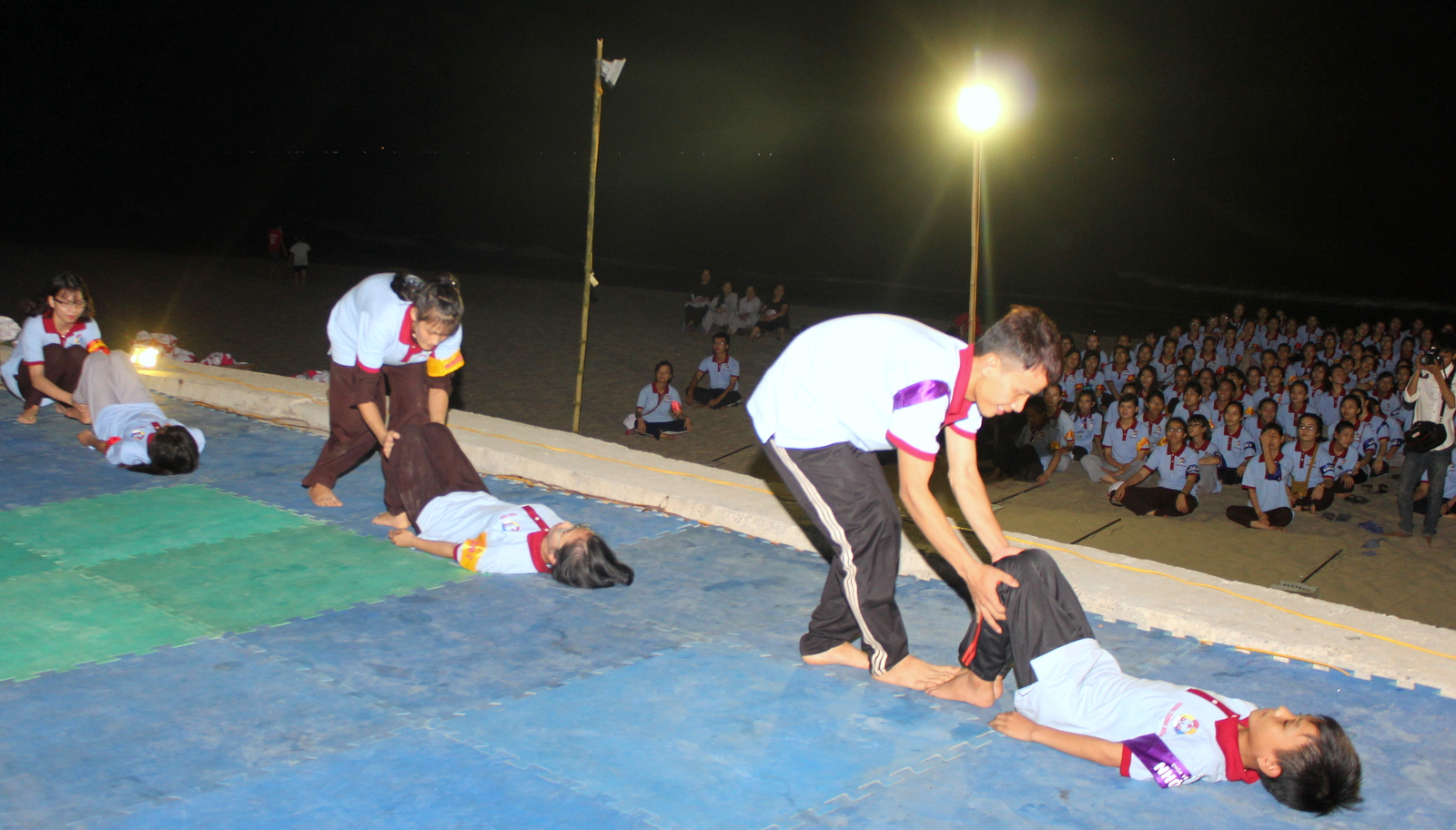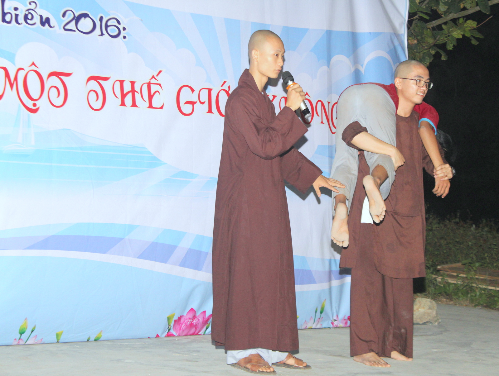 Kế đó, theo chương trình Thiền biển, các em tham gia ngồi thiền, đi kinh hành, văn nghệ, tập khí công, thi giáo lý và tham gia cuộc thi các trò chơi vận động trên biển, nhằm giúp các em tự rèn kỹ năng sống cho bản thân, và dạy cho các em biết xử lý những tình huống khó khăn như: Tập chịu đựng nắng gió sóng nước, tập nhanh nhẹn, tháo vát, biết cứu hộ cứu nạn, v.v…