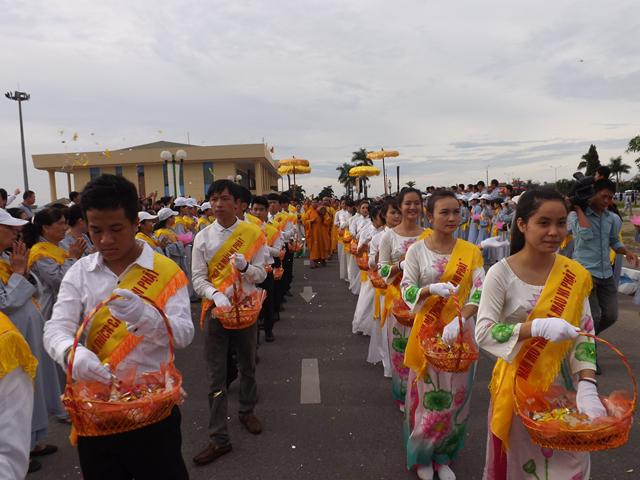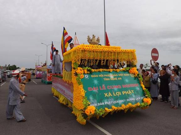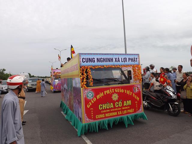 Đại lễ cung nghinh ngọc Xá lợi Phật diễn ra với nhiều nghi lễ trang nghiêm, đi đầu có đoàn rước kiệu dẫn đường, sau đó là xe chở ngọc Xá lợi Phật và các thánh tăng, tiếp đến là xe hoa của các chùa, các đạo tràng trên địa bàn tỉnh và cuối cùng là đoàn xe chở các phật tử theo tiễn.