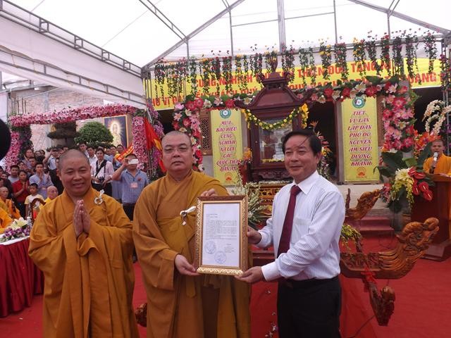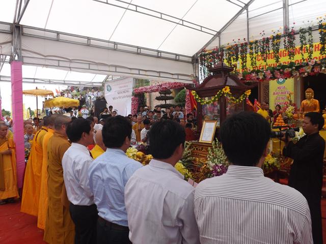 Quang lâm và chứng minh Đại lễ, về phía TW GHPGVN có: HT. Thích Thanh Đàm – Ủy viên thường trực HĐCM TW GHPGVN; HT. Thích Thanh Nhiễu – Phó chủ tịch thường trực HĐTS TW GHPGVN – trưởng Ban trị sự GHPGVN tỉnh nghệ An; TT. Thích Thọ Lạc – Ủy viên thường trực, Phó trưởng Ban thường trực Ban văn hóa TW GHPGVN, Phó trưởng Ban trị sự GHPGVN Tỉnh Nghệ An và đông đảo Chư Tôn đức, giáo phẩm, Đại đức, Tăng, Ni, Phật tử và nhân dân trong tỉnh cũng như các tỉnh lân cận cùng về tham dự.