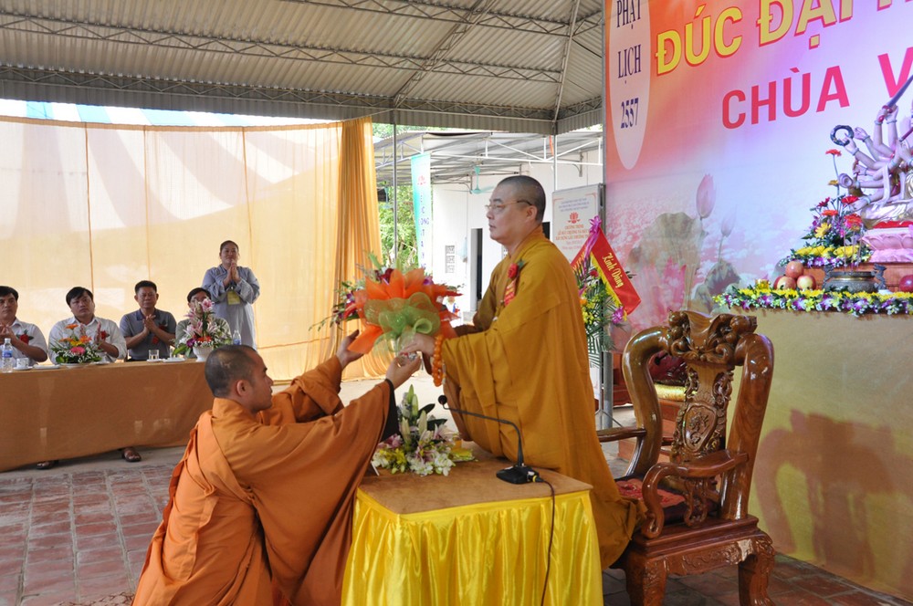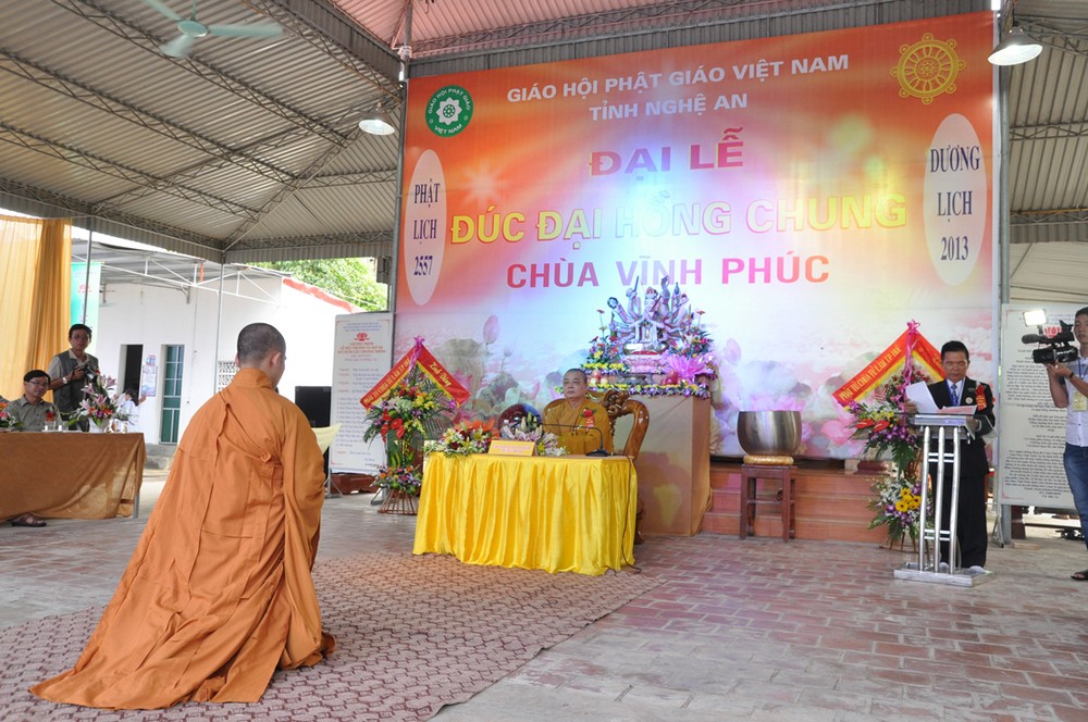 Tại buổi lễ, HT.Thích Thanh Nhiễu-Phó chủ tịch TT HĐTS GHPG Việt Nam đã phát biểu: “Phát huy truyền thống vẻ vang của quê hương cách mạng, quê hương của Chủ tịch Hồ Chí Minh, mỗi ngôi chùa, mỗi thầy trụ trì phải làm tốt công tác Phật sự, nguyện suốt đời cống hiến cho Phật pháp, làm ngọn đèn sáng để chúng sinh và các phật tử làm nhiều điều thiện nguyện và tốt đẹp, góp phần làm cho phong trào Phật giáo ở Nam Đàn nói riêng và Nghệ An nói chung ngày một tiến triển và vững chắc hơn”