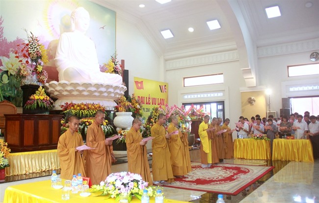 Kế đến, toàn thể hội chúng tụng bài SÁM VU LAN để gửi những lời ước nguyện cao quý thiêng liêng vào đất trời mà nguyện cầu cho âm siêu dương thới, thế giới hòa bình, chúng sinh an lạc. Đồng thời, nguyện cầu cho Tam bảo trường tồn, Tăng già hòa hợp.