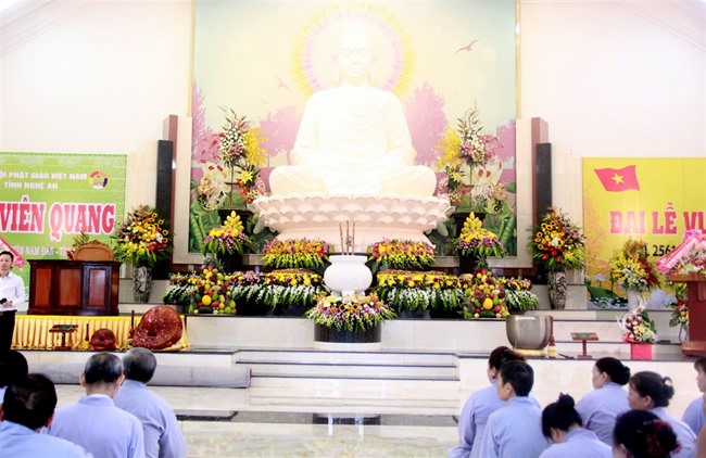 Về phía Chư tôn đức có sự quang lâm chứng minh của: TT Thích Chân Quang – Phó Ban Kinh Tế Tài Chính Trung Ương GHPGVN – Viện Chủ Thiền Tôn Phật Quang, BRVT; Đại Đức Thích Quảng Bảo – Ủy Viên thường trực, Trưởng Ban Văn Hóa BTS GHPGVN tỉnh Nghệ An; Đại Đức Thích Châu Phong – ủy viên thường trực, Trưởng Ban Pháp Chế BTS GHPGVN tỉnh Nghệ An; Đại Đức Thích Khải Đạo – ủy viên thường trực, Trưởng Ban Thông Tin Truyền Thông BTS GHPGVN tỉnh Quảng Bình.