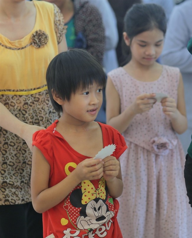 Sau cùng, đại lễ Vu Lan hoàn mãn bằng nghi thức lễ Phật và mỗi phật tử được quý thầy tặng một huy hiệu cài áo xinh xắn tượng trưng cho sự bình an may mắn.