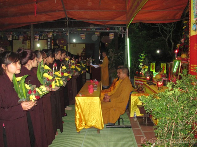 Buổi tối cùng ngày là khoảng thời gian mà các Phật tử  mong đợi nhất, tất cả bà con tại làng chài lại tụ hội về ngôi chùa bé nhỏ nhưng đầy ắp tình người này để được nghe quý thầy giảng pháp . Ai cũng chăm chú lắng nghe từng lời giảng của thầy về công hạnh của đức Phật và từ đó các phật tử lấy đó làm hành trang cho quá trình tu tập của mình. “Chúng ta phải gieo những nghiệp lành , trồng những nhân tốt và tránh xa những duyên nghiệp xấu , việc ác ”. Buổi tối lạnh lẽo nơi đây trở nên ấm áp hơn bao giờ hết khi tất cả phật tử , nhân dân thắp những ngọn nến rực cả góc trời để tri ân đóng góp vô cùng lớn lao của các anh hùng liệt sĩ , cầu nguyện cho các chiến sĩ mãi được an lành .