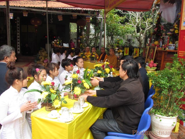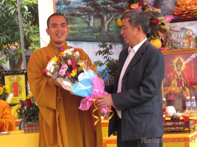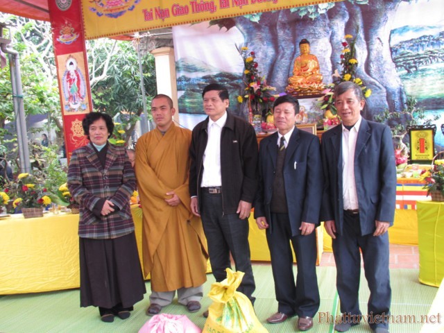 Quang lâm chứng minh buổi lễ có ĐĐ. Thích Quảng Tú, trụ trì chùa Am Ốc , xã Tiến Thủy, huyện Quỳnh Lưu, Nghệ An cùng chư tôn đức Tăng Ni, các ông bà đại diện cho các ban ngành đoàn thể của huyện Tiến Thủy , tỉnh Nghệ An và đông đảo bà con Phật tử gần xa.