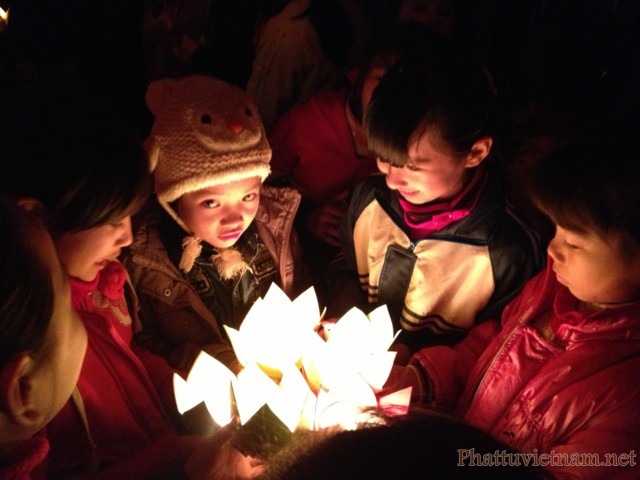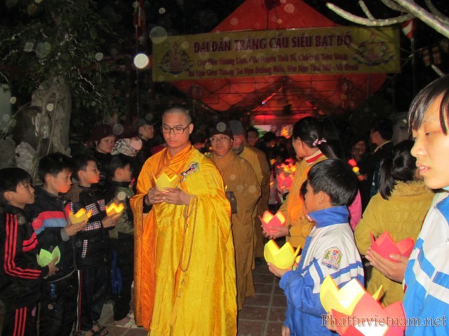 Trước khi kết thúc Pháp hội cầu siêu,vào tối ngày 20 tháng 11 năm Quý Tỵ, Đại đức trụ trì, chư tôn đức và bà con Phật tử đã có 1 đêm hoa đăng mừng khánh đản đức Phật A Di Đà đầy ý nghĩa và linh thiêng. Khi nghi thức truyền đăng chính thức được diễn ra , những ngọn nến lung linh được thắp sáng và  các Phật tử đã đón nhận ngọn đăng đó từ quý Thầy. Lúc này, toàn bộ khu vực cảng cá  cũng chính là nơi làm ăn sinh sống của người dân miền biển bừng sáng lên với hàng ngàn chiếc đèn hoa đăng sáng rực cả một vùng biển. Tất cả mọi người có mặt trong buổi lễ đều rất hoan hỷ đón mừng ngày vía Phật A Di Đà  và cầu nguyện thế giới hòa bình , vạn dân an lạc .