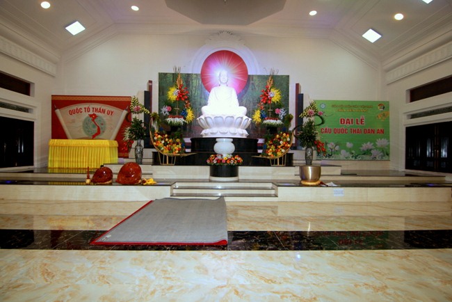 Theo đó, các tiết muc do các NSƯT như Minh Lạc – Đoàn nghệ thuật Quân khu 4; Ngọc Hà – Đoàn ca múa nhạc Dân tộc Nghệ An; NSUT Ngọc Hà; Duy Hưng và 4 tiết mục của đạo tràng Phật Hạnh, Phật Minh do phật tử Quang Minh; Nam Thái; Thu Quỳnh thuộc Tổng Đạo Tràng Phật Quang và Lớp võ thanh thiếu niên chùa Viên Quang biểu diễn, bao gồm các thể loại như: đơn ca, song ca, hợp ca, múa, biểu diễn võ thuật, nhằm góp vui cho đông đảo phật tử về dự Đại lễ Cầu Quốc thái Dân an Xuân Ất Mùi 2015 chính thức vào sáng hôm sau.