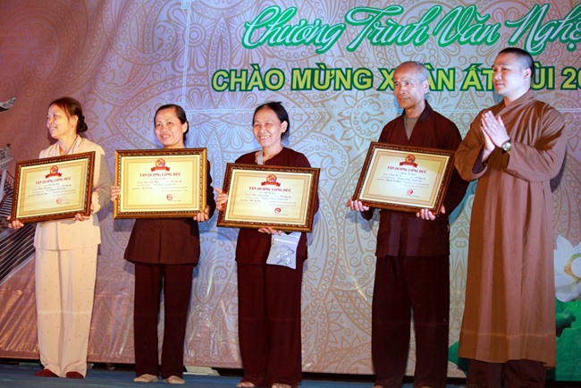 Tại đêm diễn, ĐĐ Thích Nghiêm Giám – Đại diện chùa Phật Quang đã trao bằng công đức cho các phật tử đạo tràng Phật An đạt danh hiệu “Từ thiện xuất sắc” và Hoằng pháp xuất sắc”./.