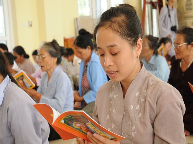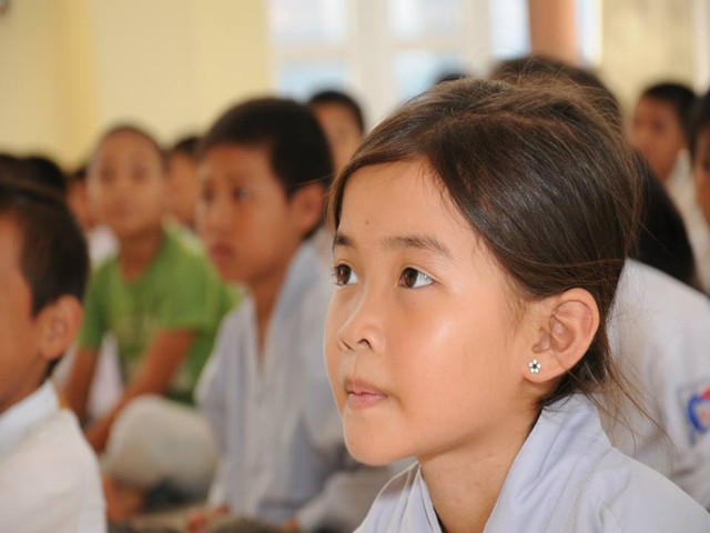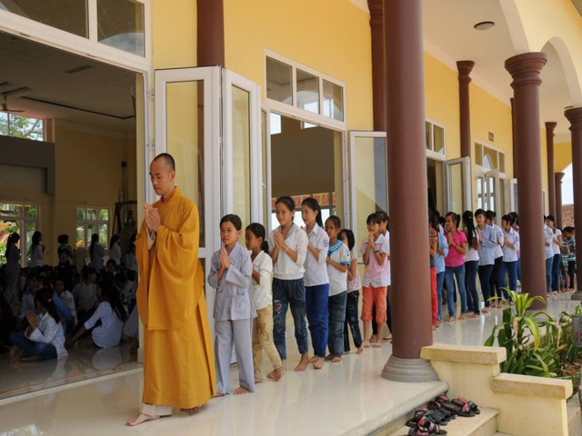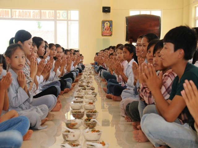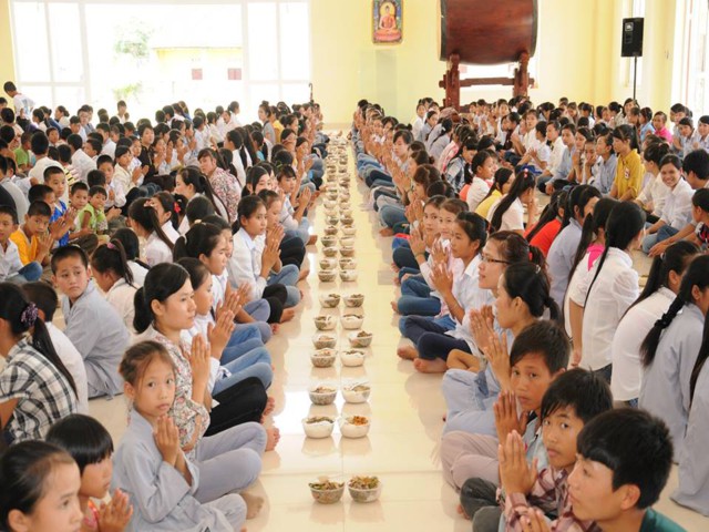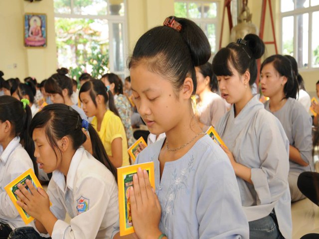 Các khóa sinh đã được thực tập nghe pháp, niệm Phật, thiền hành, ăn cơm trong chánh niệm, tụng kinh…với tất cả sự thành tâm của tuổi trẻ.