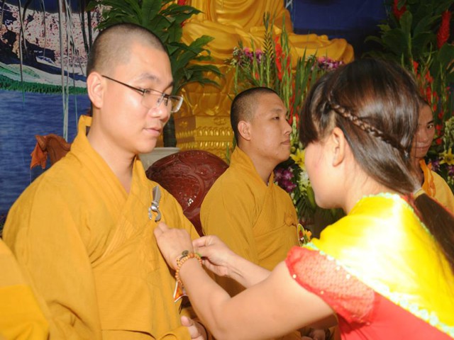 Kết thúc buổi lễ là Phật tử khánh tuế và dâng Pháp y cúng dường chư tôn đức trong mùa tự tứ năm nay.