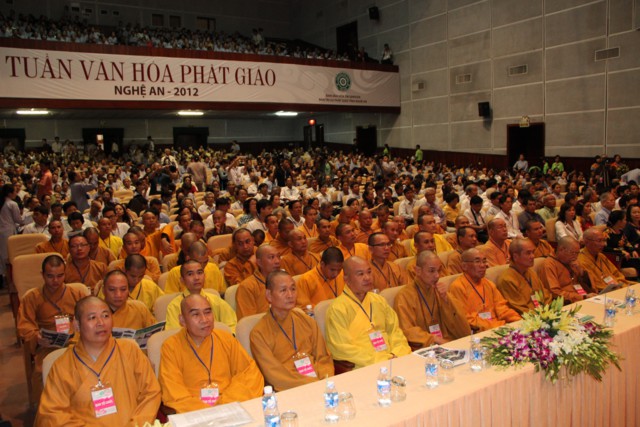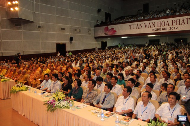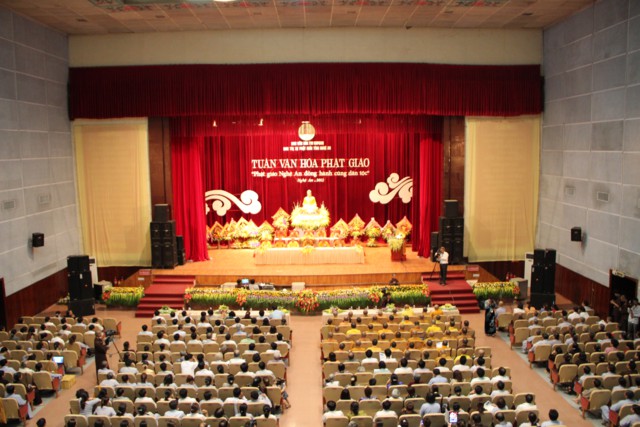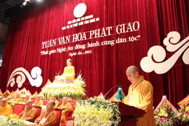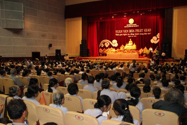 Tại buổi lễ HT Thích Thanh Nhiễu – Trưởng Ban tổ chức đọc lời khai mạc: Trong lịch sử hào hùng của đất nước và của người dân xứ Nghệ, đã có đóng góp lớn lao của Phật giáo, nhất là của văn hóa tình thương mà Phật giáo đã mang lại cho dân chúng.