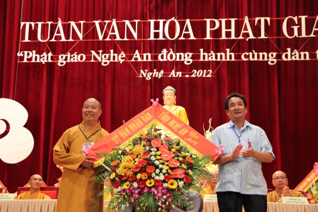 Tại buổi lễ đại diện lãnh đạo Tỉnh ông Thái Văn Hằng phát biểu chúc mừng: Tuần lễ văn hóa Phật giáo Nghệ An là sự kiện quan trọng chào mừng Đại hội đại biểu Phật giáo toàn quốc lần thứ VII năm 2012. Chính quyền tỉnh Nghệ An đánh giá cao chủ trương và sự chuẩn bị khẩn trương của Ban văn hóa TW, BTS Phật giáo tỉnh Nghệ An, đặc biệt là ý nghĩa, mục đích quan trọng của Tuần lễ văn hóa đem lại nguyện vọng chính đáng của nhân dân Phật tử, với mong muốn Tăng Ni hòa hợp, tín đồ đoàn kết để vừa phục hưng đạo pháp, vừa phát huy các giá trị đạo đức văn hóa Phật giáo đồng hành cùng dân tộc.
