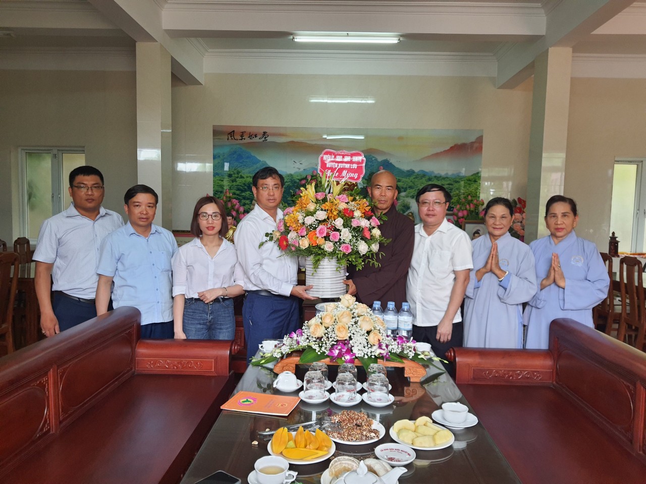 Thay mặt lãnh đạo huyện, ông Nguyễn Xuân Dinh – Ủy viên Ban Thường vụ Huyện ủy, Phó Chủ tịch UBND huyện đã gửi lời chúc mừng tốt đẹp nhất tới chư Tôn đức Tăng Ni và bà con Phật tử đón mùa Phật đản vui tươi, an lạc, hạnh phúc. Đồng thời bày tỏ tình cảm trân trọng về sự đóng của Phật giáo trong quá trình phát triển kinh tế – xã hội của huyện và mong muốn rằng, chư Tăng Ni, Phật tử huyện nhà tiếp tục thực hiện tốt phương châm “Đạo pháp – Dân tộc – Chủ nghĩa xã hội” cùng với chính quyền địa phương xây dựng khối đoàn kết toàn dân tộc.