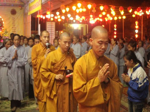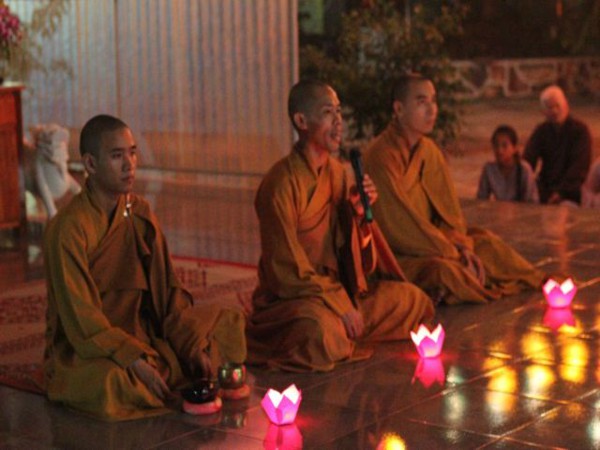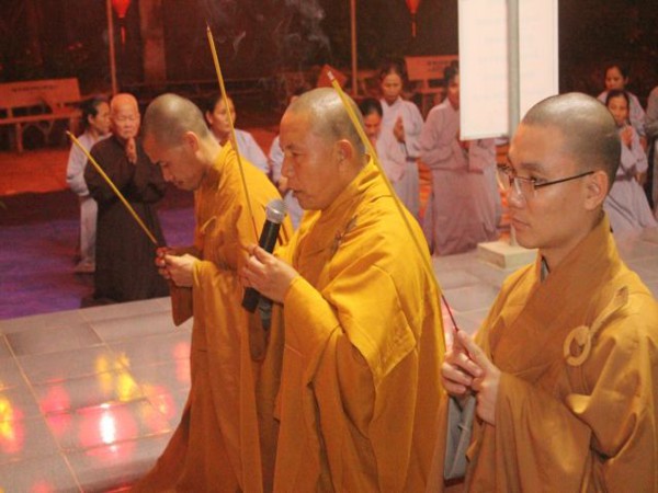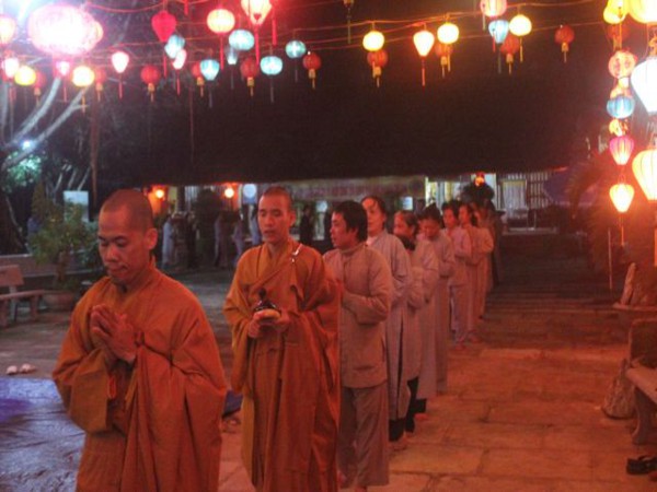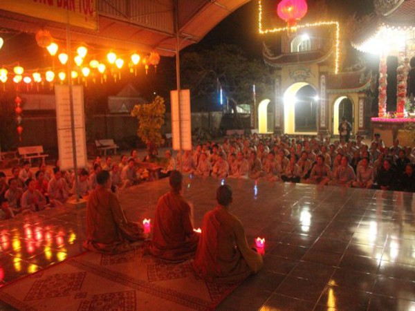 Trong ánh nến lung linh mầu nhiệm, đèn lồng ấm áp, ĐĐ. Thích Minh Lý đã thay mặt cho toàn thể chư tôn đức ban lời đạo từ.