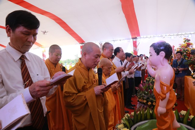 Tiếp đó, chư Tôn đức và toàn thể hội chúng đã dâng hương bạch Phật, khai lễ, xướng tụng hồng danh Đức Bản Sư Thích Ca Mâu Ni Phật, tụng kinh kính mừng Phật đản. Chư Tôn đức cùng toàn thể quý vị đại biểu và Phật tử tham gia nghi thức tắm Phật trong niềm hoan hỷ.