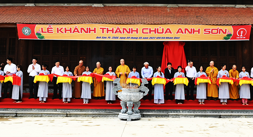 Tại buổi lễ, các đại biểu và tăng ni phật tử tham dự các nghi lễ niệm hương, lễ Tam bảo, chú nguyện,và cắt băng khánh thành chùa Anh Sơn. Được biết chùa Anh Sơn có trên 10 hạng mục, Các hạng mục đã hoàn thành với nguồn kinh phí xã hội hóa. Việc xây dựng chùa Anh Sơn đã đáp ứng được tâm nguyện, mong mỏi của đông đảo Phật tử trong huyện, chùa trở thành một cơ sở thờ tự, sinh hoạt văn hóa tâm linh tín ngưỡng của bà con phật tử trong và ngoài huyện Anh Sơn, đồng thời gắn kết với các hoạt động du lịch trong quần thể Khu Di tích Lịch sử Văn hóa tâm linh.