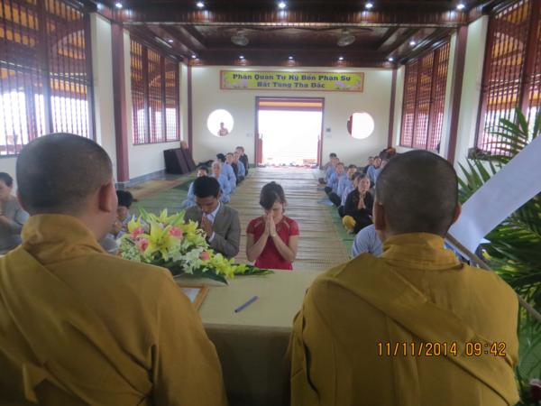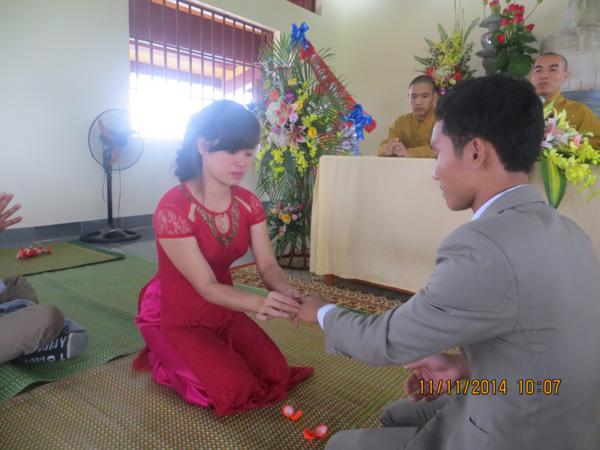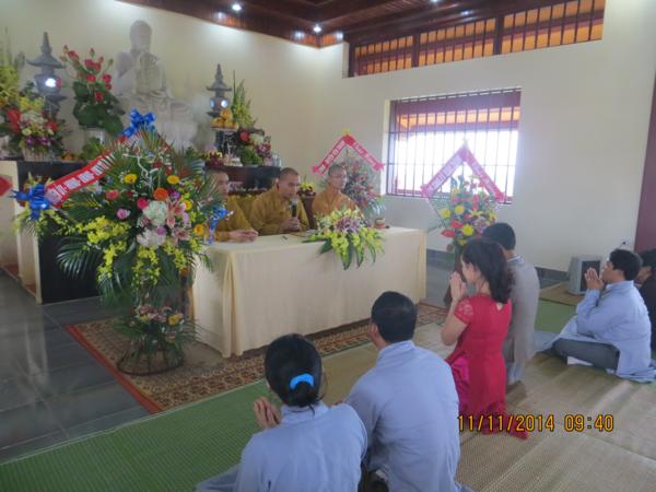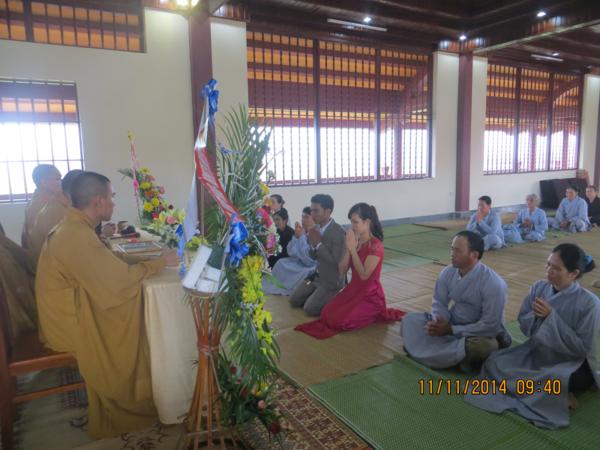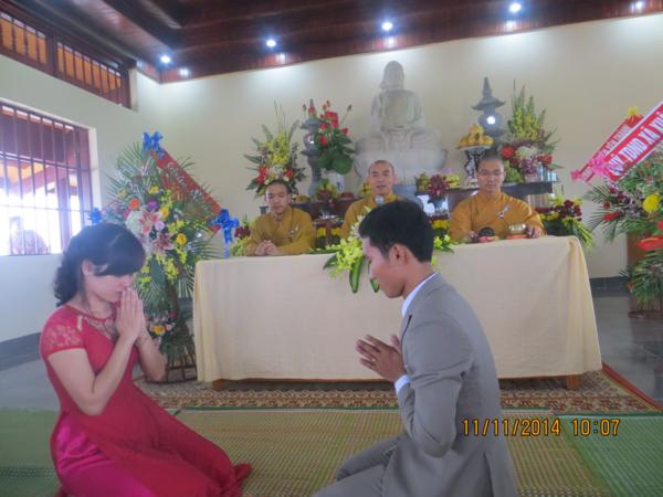 Buổi lễ diễn ra dưới sự chứng minh của Đại đức Thích Tuệ Minh, phó trụ trì cùng chư tăng tại bổn tự. Thay mặt chư tăng, đại đức Thích Tuệ Minh đã có những lời chia sẻ cho đôi bạn trẻ về nghĩa vụ, bổn phận trách nhiệm mà một người công dân, một Phật tử, một người con đối với đất nước, Tam Bảo, gia đình để làm sao sống thật tốt và tròn hết thảy những cương vị mà chúng ta có. Được như vậy, đời sống vợ chồng sẽ trở thành thiêng liêng hơn bao giờ hết và hạnh phúc bình an là điều dĩ nhiên sẽ có.