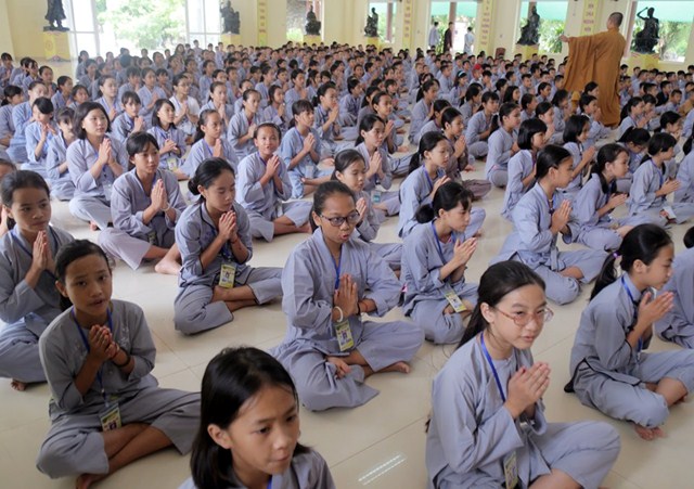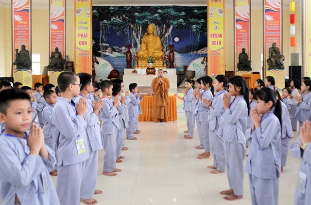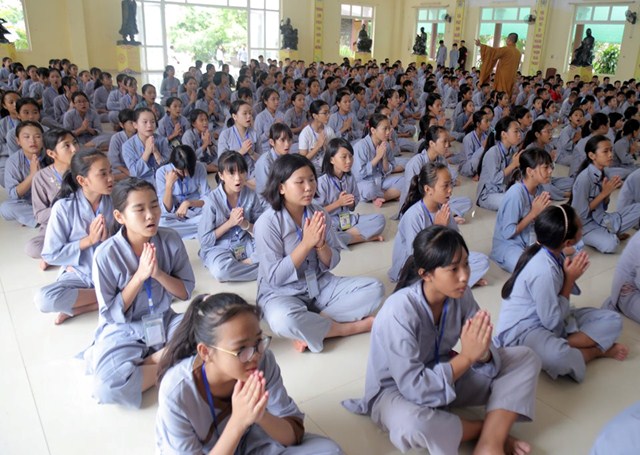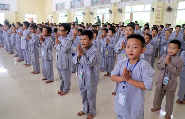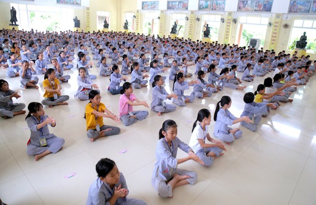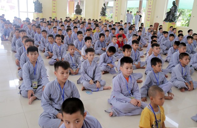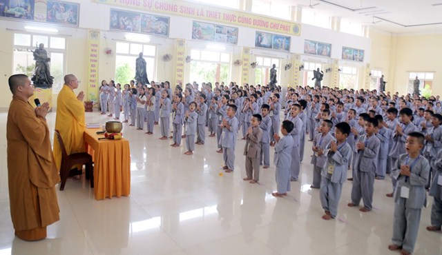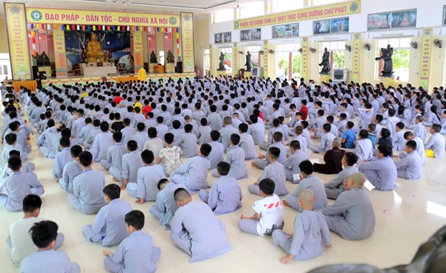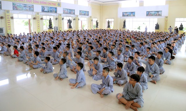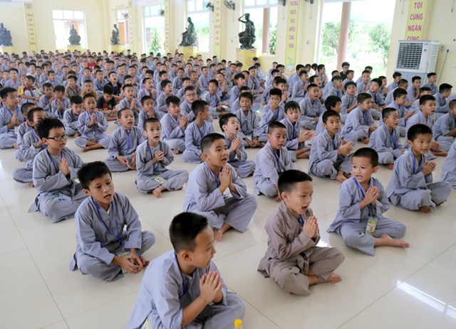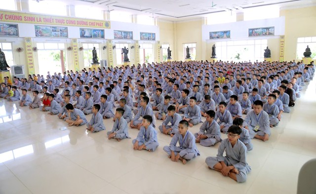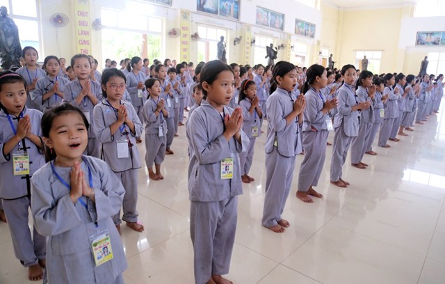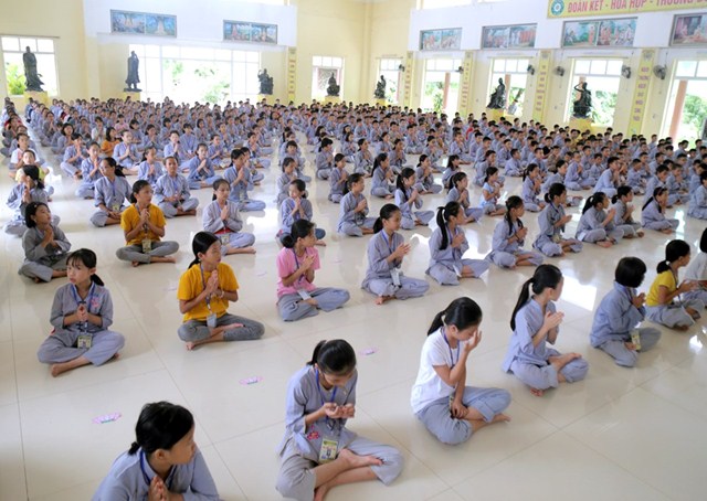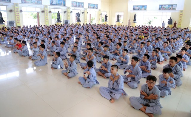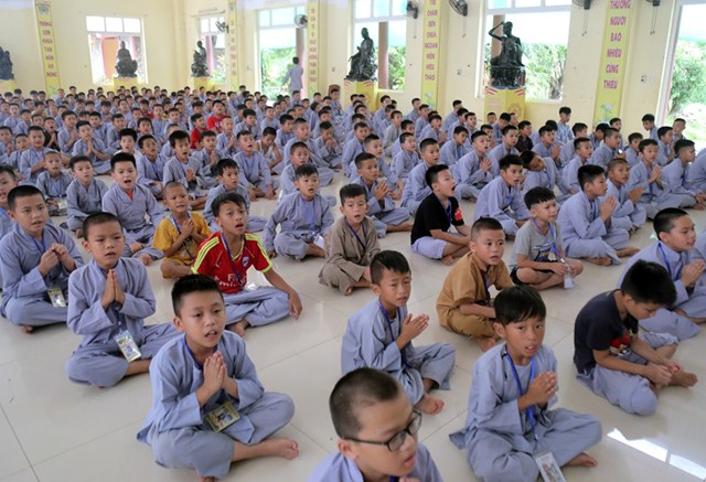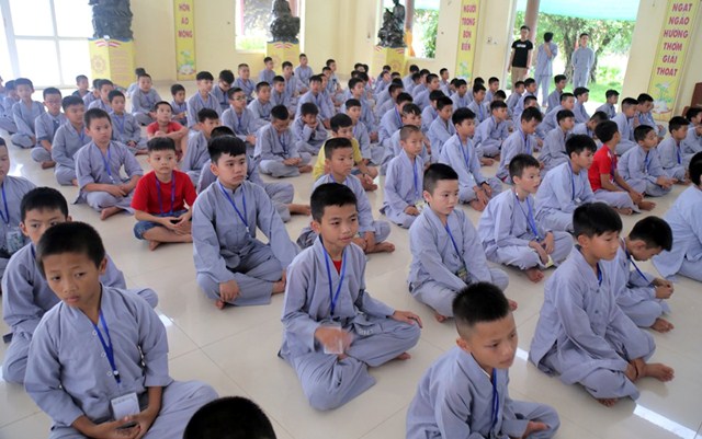 Năm nay, chùa Gám ( Chùa Chí Linh), huyện Yên Thành, tỉnh Nghệ An sẽ tổ chức 2 khóa tu mùa hè dành cho các bạn trẻ, mỗi khóa sẽ có khoảng hơn 1500 khóa sinh tham gia, được chia theo độ tuổi khác nhau. Ngày 2 tháng 6 năm 2019 ( nhằm ngày 29/4/Kỷ Hợi) vừa qua đã diễn ra Lễ khai mạc khóa tu mùa hè “ Ươm Mầm Hoa Sen năm 2019” đầu tiên trong năm nay dành cho các bạn trẻ trong độ tuổi từ 6 đến 12 tuổi với sự tham dự của hơn 1500 bạn trẻ đến từ thành phố Vinh, các huyện của tỉnh Nghệ An và một số tỉnh thành lân cận trong khoàng thời gian từ ngày 2/6 đến hết ngày 8/6/2019.
