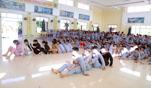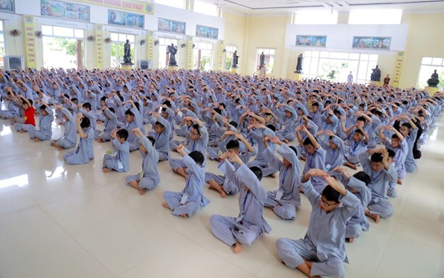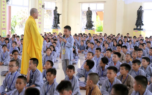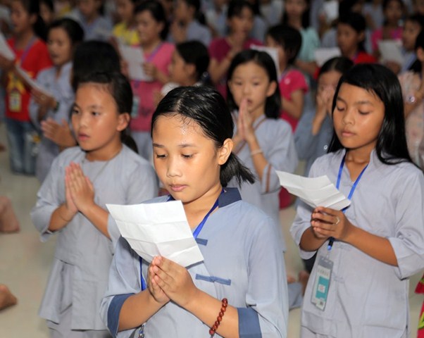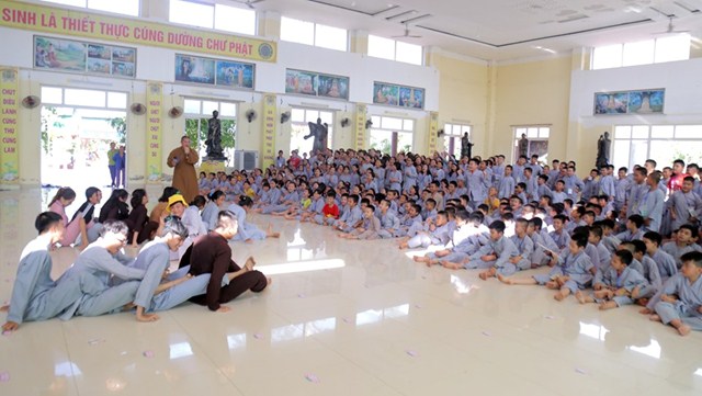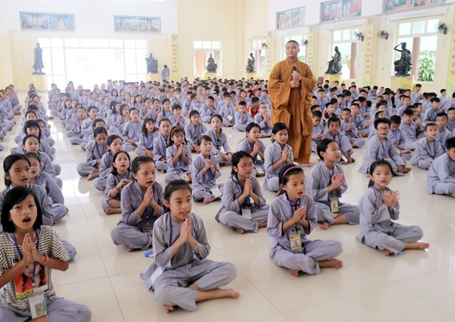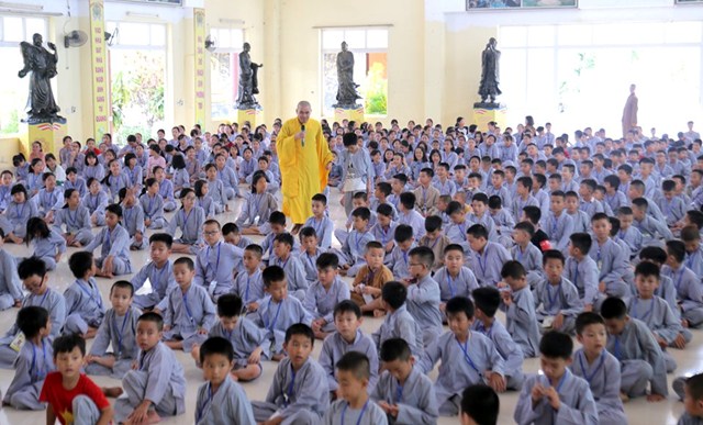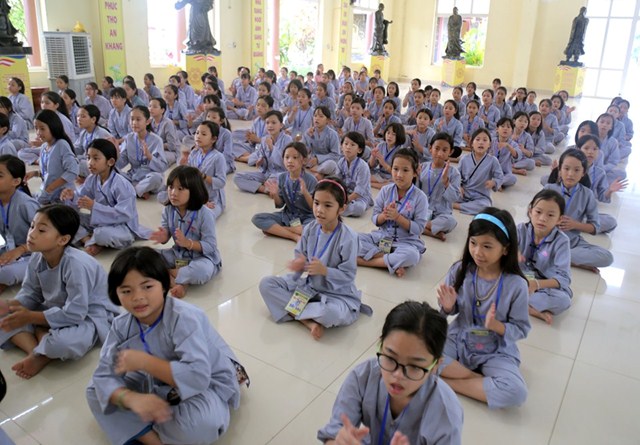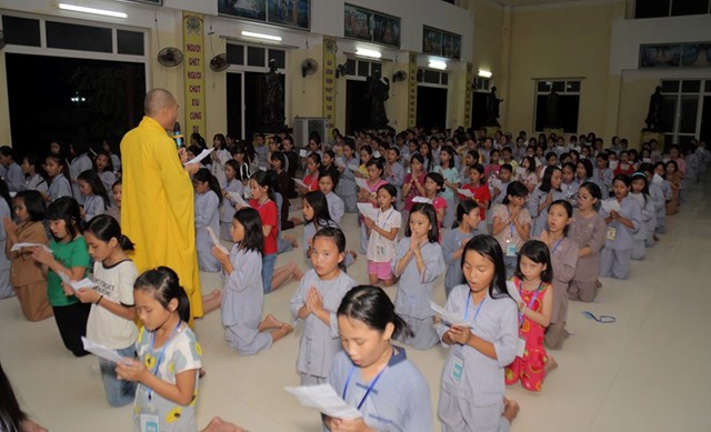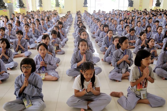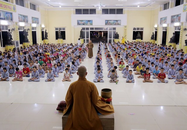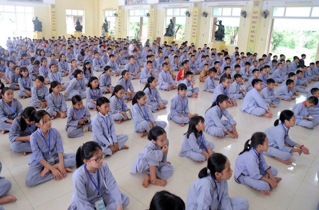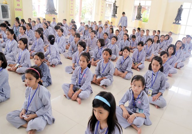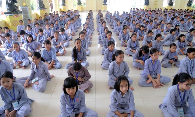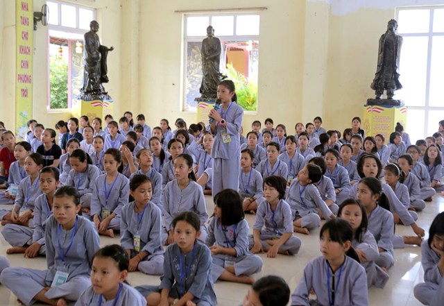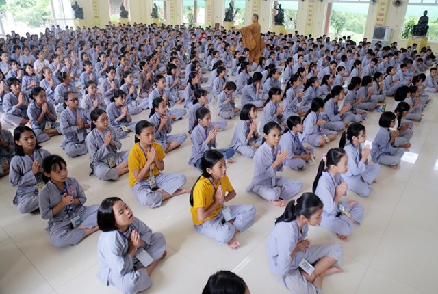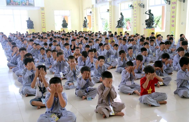 Năm nay, chùa Gám ( Chùa Chí Linh), huyện Yên Thành, tỉnh Nghệ An sẽ tổ chức 2 khóa tu mùa hè dành cho các bạn trẻ, mỗi khóa sẽ có khoảng hơn 1500 khóa sinh tham gia, được chia theo độ tuổi khác nhau. Ngày 2 tháng 6 năm 2019 ( nhằm ngày 29/4/Kỷ Hợi) vừa qua đã diễn ra Lễ khai mạc khóa tu mùa hè “ Ươm Mầm Hoa Sen năm 2019” đầu tiên trong năm nay dành cho các bạn trẻ trong độ tuổi từ 6 đến 12 tuổi với sự tham dự của hơn 1500 bạn trẻ đến từ thành phố Vinh, các huyện của tỉnh Nghệ An và một số tỉnh thành lân cận trong khoàng thời gian từ ngày 2/6 đến hết ngày 8/6/2019.